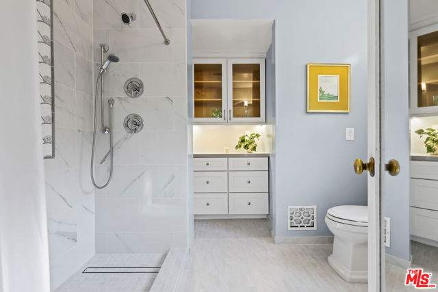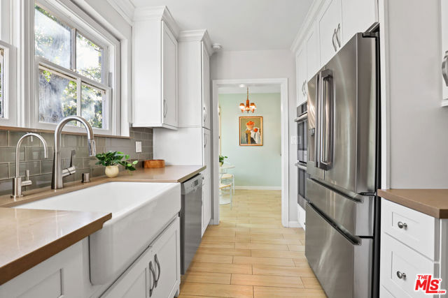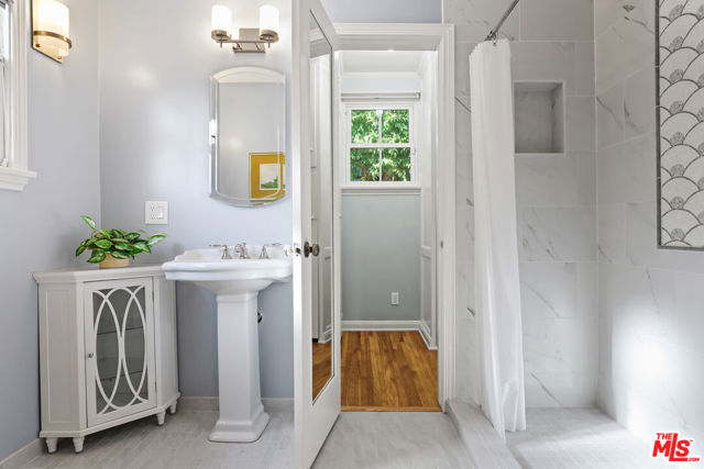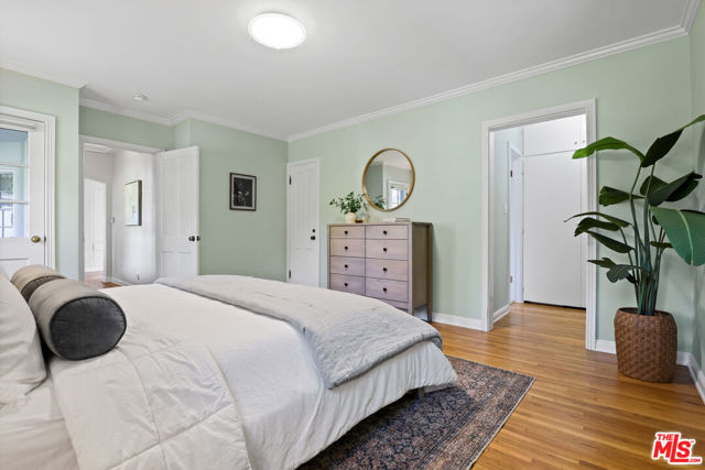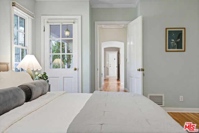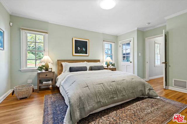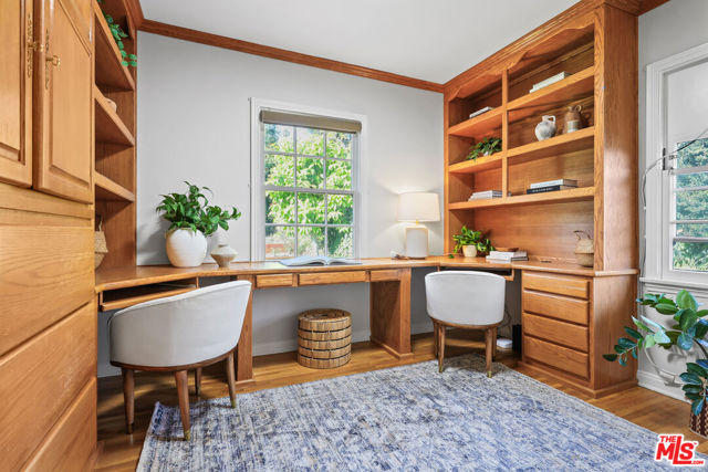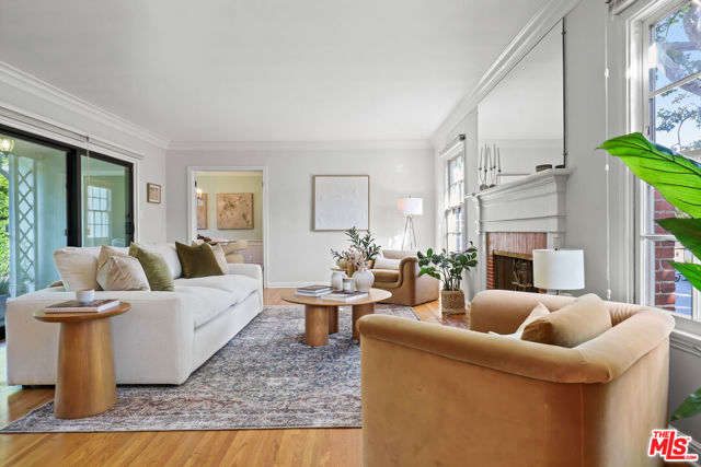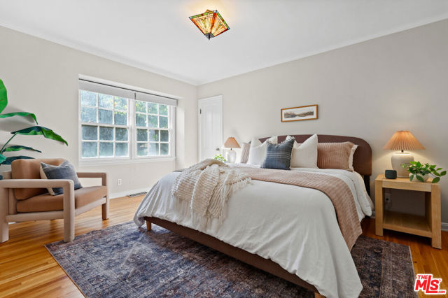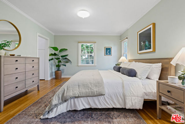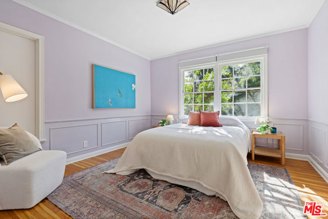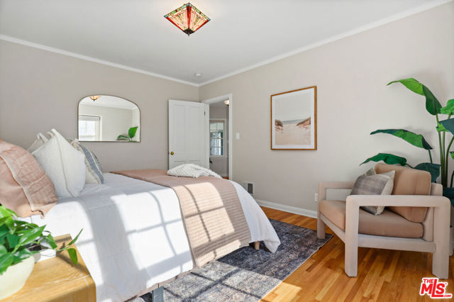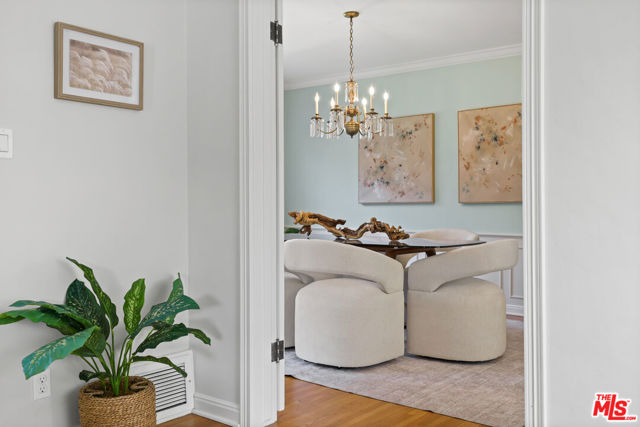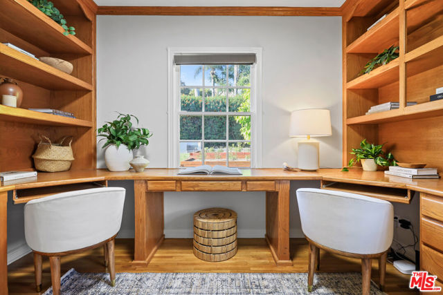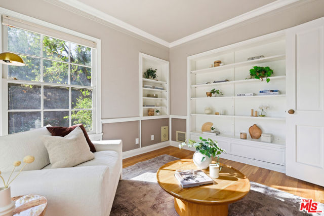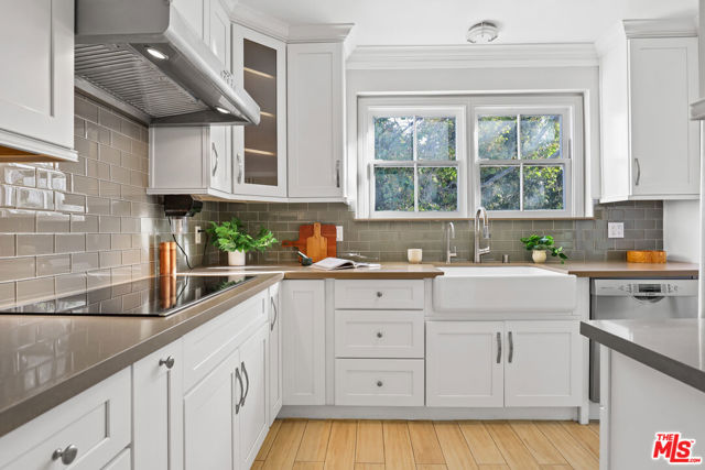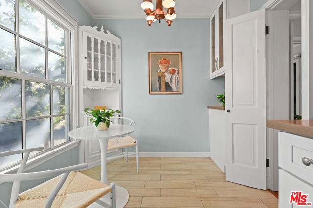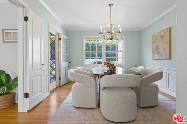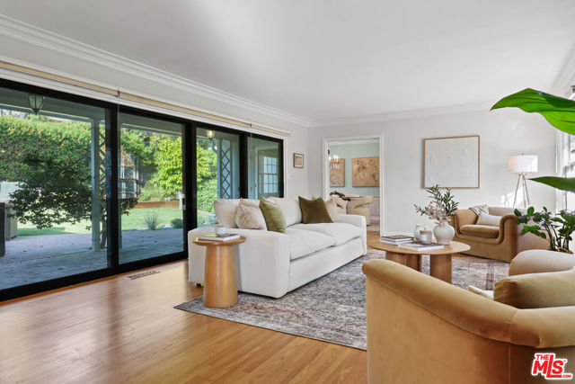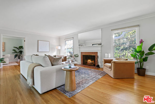 Tucked into the hills of Glendale's Royal Canyon, 1609 Las Flores is a beautifully done1937 bright and airy home set on a 10,000 square foot mostly flat lot, with the large beautifully landscaped backyard as its focal point. The home is set prominently above the street on a quiet corner overlooking the immediate neighborhood. This sprawling single story home takes full advantage of the park-like grounds as multiple public and private rooms open to it. The living room centers on a brick fireplace and a wall of sliding glass doors opening to the covered patio and the yard beyond. The dining room sits just off this space, with corner windows, a coved ceiling, and a built-in cabinet, along with direct access to both the living room and the yard. The kitchen has been updated with stone countertops, stainless steel appliances, a subway tile backsplash and glass-front upper cabinets. The window over the sink looks out over the neighborhood. A primary suite is placed along the backyard and opens directly to it for your morning latte. It also features a recently renovated bathroom with a walk -in closet and dressing area Two additional bedrooms and the den are off the light and bright hallway. The den is finished with a wall of shelving gazes over the tree lined street below. The 4th bedroom at the corner of the home features built-ins that work well as an office or library if needed. The backyard functions as an extension of the house with its covered brick patio just off the living room. Beyond it, the yard opens to a broad stretch of lawn, bordered by mature hedging and layered planting adds depth without interrupting the space. The placement of the house gives the yard a sense of privacy while keeping it open. Set within the Royal Canyon neighborhood of Glendale, the home sits in a quiet pocket known for its setting and access to nearby hiking trails, while still close to Glendale's shops and restaurants.