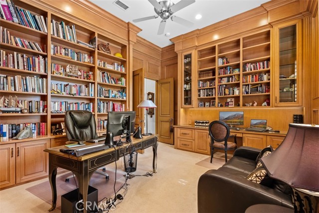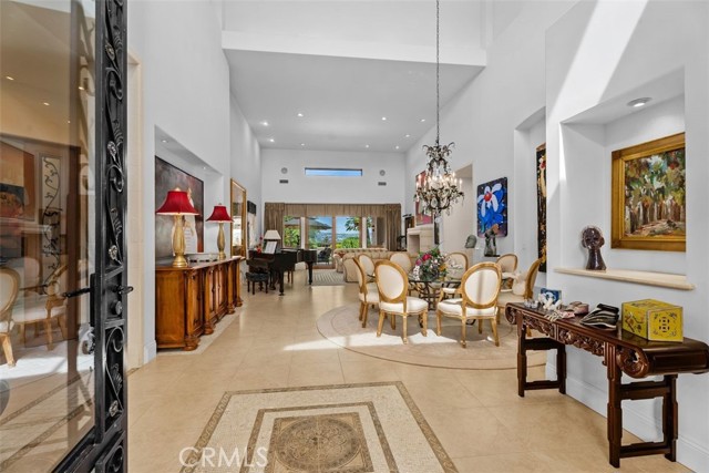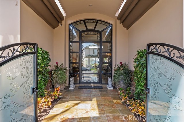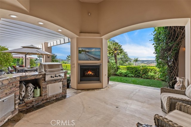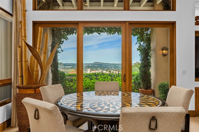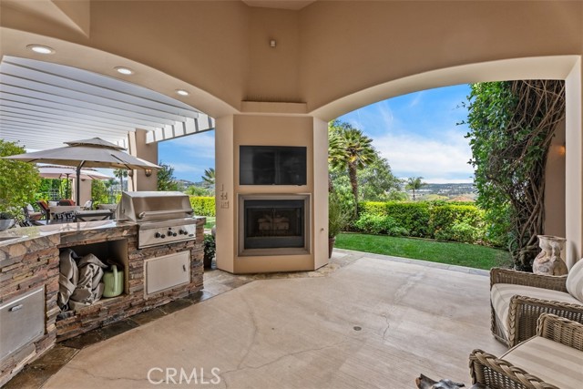 Rare single-level custom estate in the prestigious gated community of The Estates in Laguna Niguel. Ideally located on a private 14,872 sq ft double lot at the end of a cul-de-sac, this 4,874 sq ft home offers sweeping Saddleback Valley and mountain views—snow-capped in winter. Built with exceptional quality and steel reinforcement, the home features soaring ceilings throughout (up to 28 feet), abundant natural light, skylights, and expansive wall space ideal for art. The gourmet kitchen opens to a large family room and includes an oversized island, premium appliances, dual-sided fireplace, walk-in pantry, and butler’s pantry with 3 wine refrigerators. Formal living and dining rooms provide additional entertaining space. 4 spacious bedrooms including a luxurious primary suite with fireplace, sitting area, spa-style bath, and dual oversized walk-in closets (one cedar-lined). Seamless indoor-outdoor living with French doors leading to a private backyard featuring a fireplace, BBQ area, 2 fountains, and covered loggia—perfect for sunset and city light views. Mature landscaping includes camphor, Italian cypress, and multiple fruit trees. Tall hedges provide exceptional privacy. “Certain images have been digitally enhanced, including the addition of virtual elements such as TV screens and fireplace flames. These enhancements are for visual illustration only and do not represent actual conditions.”Additional features: finished attic, dedicated office, extensive built-ins, garage half bath, dual water treatment systems, dual HVAC systems (one new), dual water heaters (one of which is instant-hot), ADT security and closed-circuit perimeter monitoring, and oversized 4-car garage (extra large doors for RV). Enjoy resort-style amenities including tennis, pools, fitness center, and pickleball. A rare opportunity to own a truly custom, single-level estate in one of Laguna Niguel’s most sought-after gated communities. Short ride to beaches, Laguna Beach,,Dana point harbor