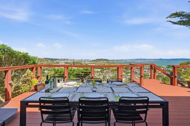 Welcome to 820 Humboldt Road, a light-filled contemporary home in the hills of Brisbane, featuring panoramic Bay views with a direct line of sight to the San Francisco skyline and SF Bay. Expansive windows and wide sliding doors create a seamless indoor-outdoor flow, opening to multiple decks ideal for entertaining, dining, and relaxing against a stunning waterfront backdrop. The open-concept living and dining areas are filled with natural light and centered around a gas fireplace, while the kitchen offers granite countertops and JennAir appliances, perfectly positioned for both everyday living and hosting. The primary suite features its own private view deck, creating a peaceful retreat with sweeping views of the Bay and the city. Additional features include updated bathrooms with custom tile, in-unit laundry, dual-zone heating, and generous storage. Ideally located just minutes from San Francisco, this home offers a rare combination of privacy, views, and convenience. Brisbane has great weather and has a beautiful outdoor pool, tennis courts, and a free shuttle to BART/Caltrain. Brisbane hosts Concerts in the Park, a farmers' market on Thursdays, and many other events and amenities that offer a small-town feel yet are so close to the city.