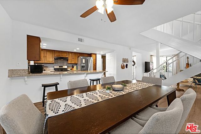 A wonderful opportunity to buy a turnkey, high-ceiling, light-filled townhouse perfectly tucked inside the complex to provide peace and privacy in your home/work-life. The open floor concept offers an optimal flow from the large living room, formal dining room, and well-designed kitchen that features updated cabinets, stainless steel appliances, and a granite countertop. Adjacent to the dining room is an enclosed patio that offers a unique al fresco experience for your dining/entertainment lifestyle. There is also a large private laundry / storage area. Upstairs are two generously sized bedrooms with two updated bathrooms. Both bedrooms have abundant closet/cupboard space for easy storage. The primary bedroom has an en-suite bathroom and a cozy balcony. Just minutes away are some of the most premier entertainment venues: Sofi Stadium, Kia Forum, and the newly built Intuit Dome. Ideally situated near shops, restaurants, and the future Inglewood Transit Connector.