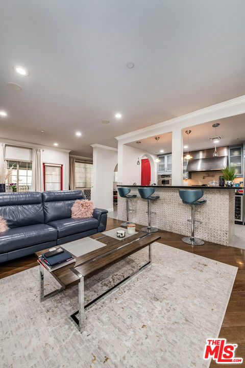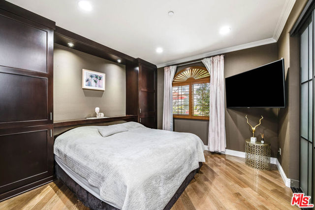 Welcome to 4805 Bellflower Ave #104, a beautifully upgraded 3-bedroom, 2.5-bath condo offering the perfect blend of style, comfort, and convenience in the heart of North Hollywood. This thoughtfully designed home features an open-concept layout with a seamless flow between the kitchen, dining, and living areasideal for both everyday living and entertaining. The chef's kitchen showcases custom cabinetry, granite countertops, a spacious pantry, stainless steel appliances, a built-in wine cooler, and a breakfast bar overlooking the living room. The inviting living space is highlighted by rich hardwood flooring, recessed lighting, and a stunning fireplace, with large sliding doors leading to a private patio overlooking a serene courtyard. The spacious primary suite offers a peaceful retreat with ample closet space and a beautifully updated en-suite bathroom featuring dual vanities and a large walk-in shower, while two additional bedrooms provide flexibility for guests, office space, or family needs. Additional features include a stylish powder room, in-unit laundry, and high-end finishes throughout. Located in the desirable "Arte Toluca" community, residents enjoy amenities such as a modern screening room with theater seating and wet bar, tranquil courtyard with fountain, and secured side-by-side parking. Ideally situated near the vibrant NOHO Arts District with its popular restaurants, studios, shopping, and convenient transportation options, this move-in-ready home offers the best of luxury and location.