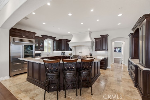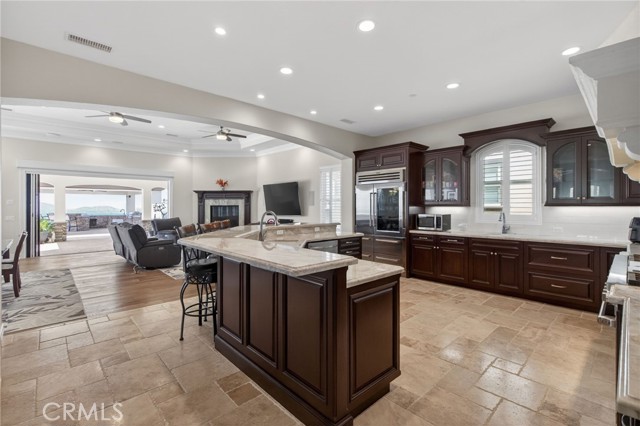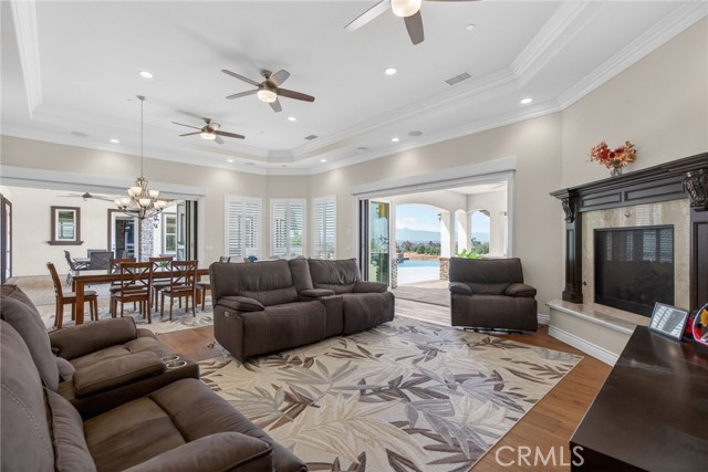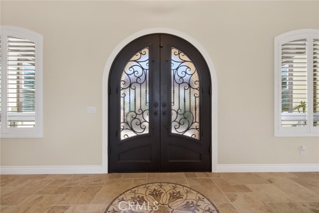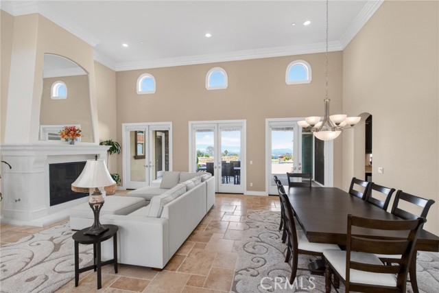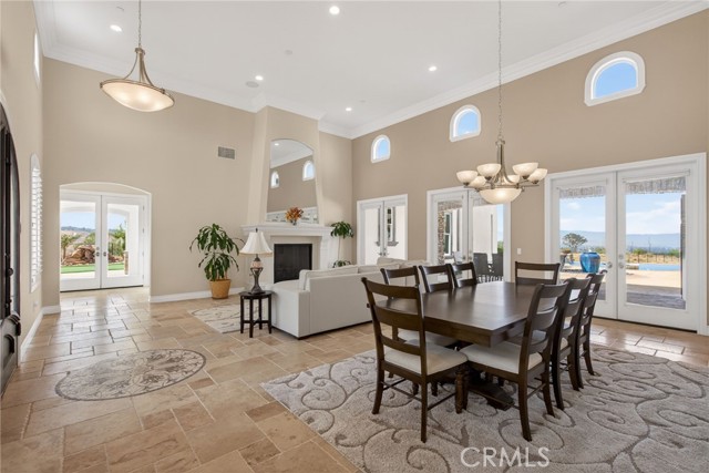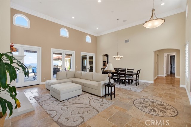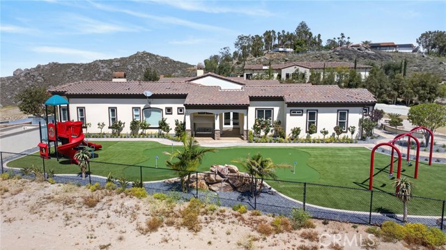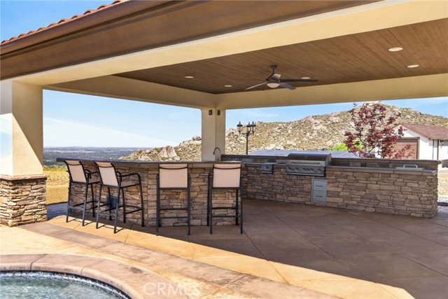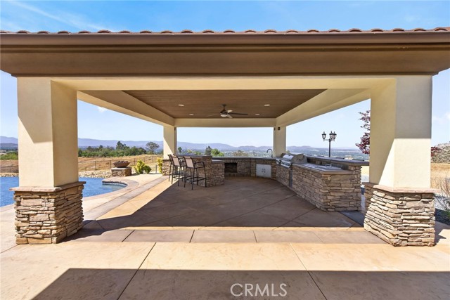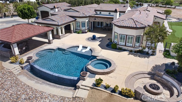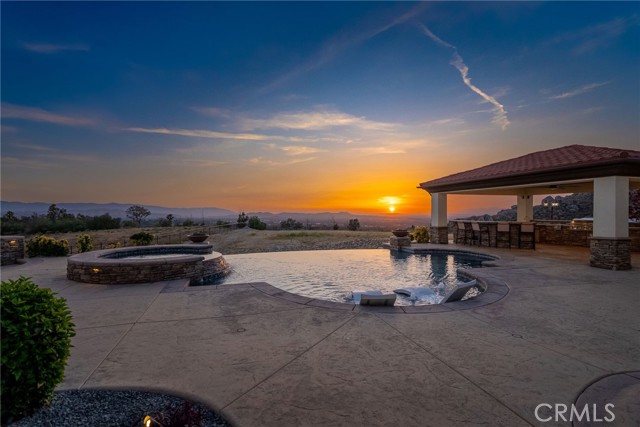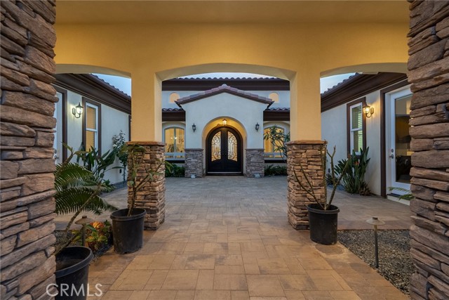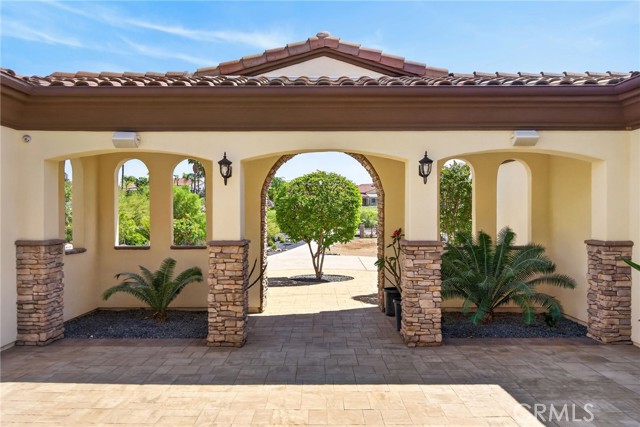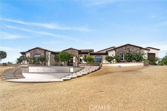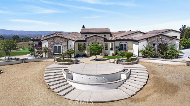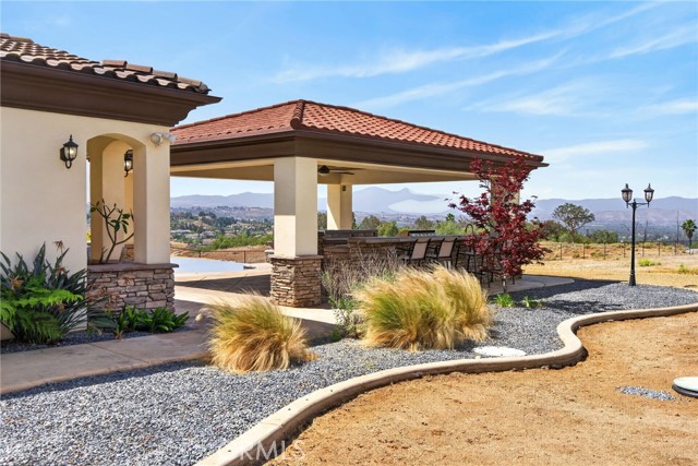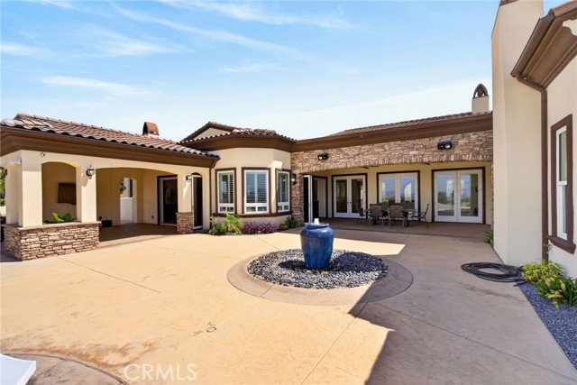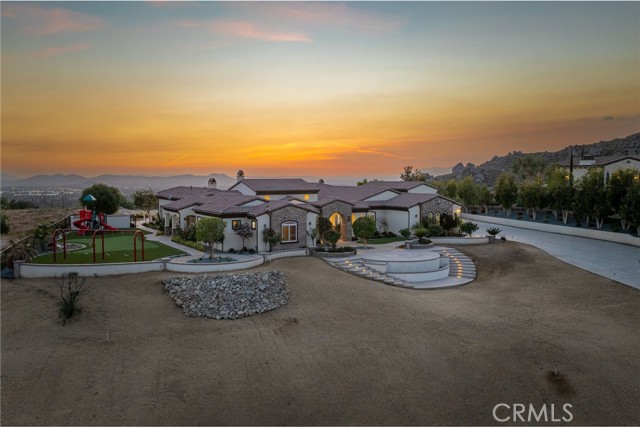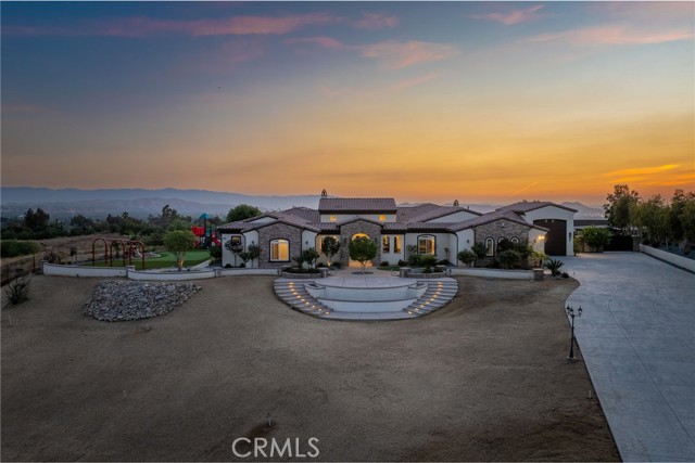 ALESSANDRO HEIGHTS – SUNSET HILLS/HIDDEN CANYON Perched atop the highest ridge of Hawarden Hill on over 7 acres of stunning rolling terrain, this custom, single-level gated estate offers unmatched privacy and breathtaking panoramic views of Riverside's city lights and surrounding mountains. As you pass through the gated entrance and ascend the private driveway, you’re greeted by a warm and inviting front courtyard. Step through the grand double iron doors into a spectacular great room with soaring ceilings and clerestory windows that fill the space with natural light. French doors at the rear perfectly frame the vanishing edge pool and the mesmerizing views beyond. Thoughtfully designed for comfort and functionality, the home features distinct living areas: a serene primary suite, a cluster of family bedrooms, and a tranquil guest suite nestled off the courtyard. The professional-grade kitchen is a chef’s dream, boasting stone countertops, stainless steel appliances, a butler's pantry, and additional serving and food pantries. The expansive family room, with its double bi-folding doors, effortlessly connects to the outdoor living spaces, creating the ultimate setting for entertaining. The meticulously landscaped grounds are a true paradise, offering an array of amenities: a sparkling pool and spa, tranquil water features including a front waterfall and multiple fountains, a fully-equipped outdoor kitchen, a covered living area, a putting green, and a playground. The oversized 3-car garage is complemented by an attached RV garage—with its own bathroom—capable of housing up to three additional vehicles. There’s also a storage shed and ample off-street parking for guests. For those with agricultural ambitions, the property includes an established well ready to support a potential avocado or citrus orchard. Additionally, the owned solar system significantly reduces energy costs, making this estate as efficient as it is luxurious. This exceptional property offers a rare combination of rural tranquility and proximity to all that Riverside has to offer. A truly spectacular estate designed for living, entertaining, and enjoying life to the fullest!