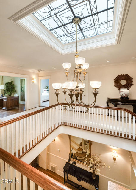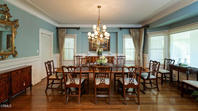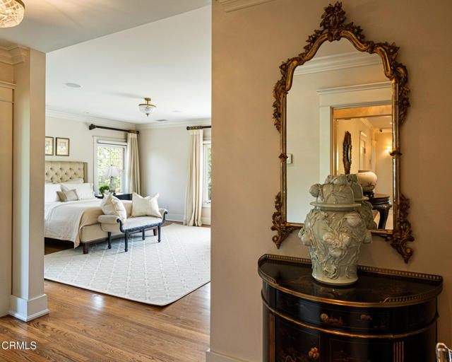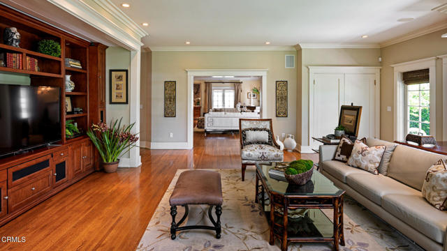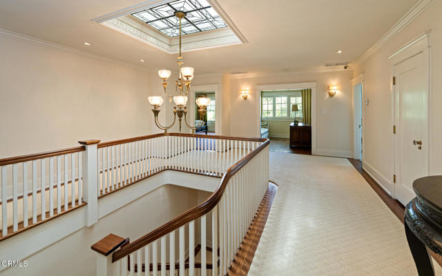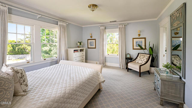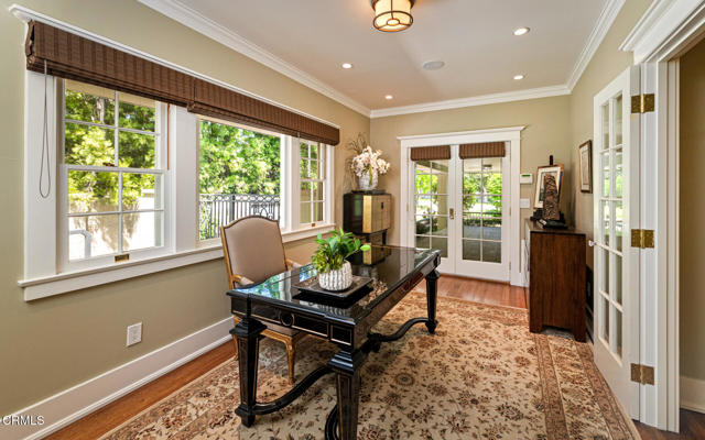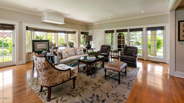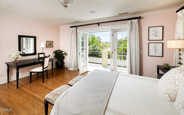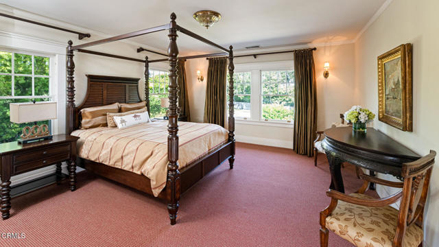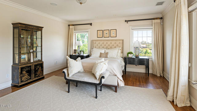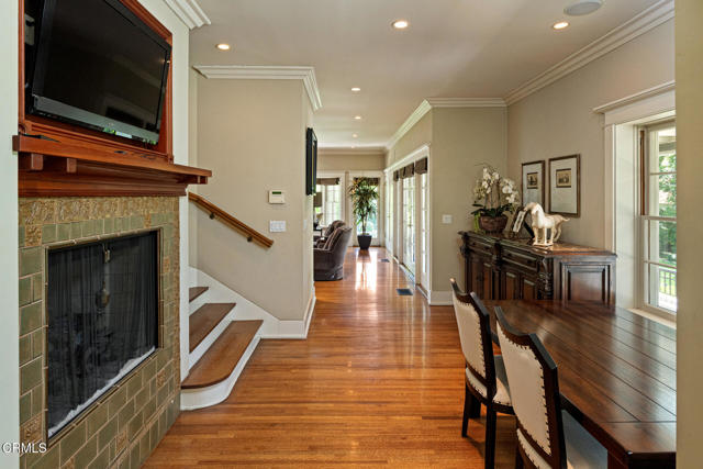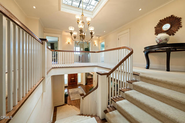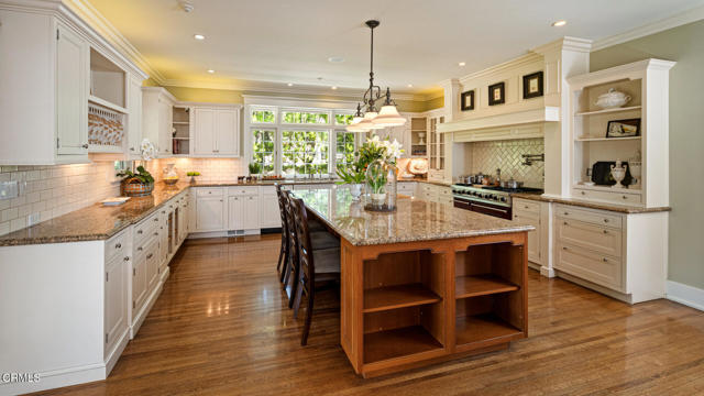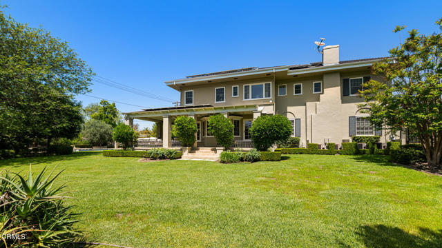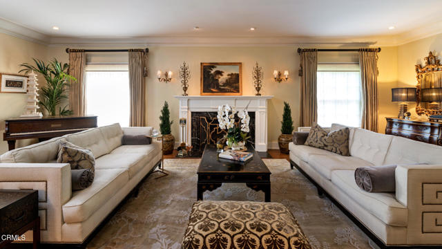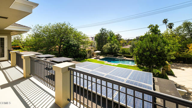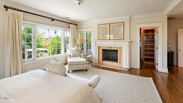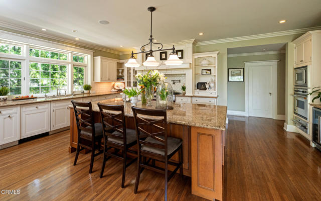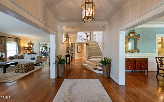 Situated on one of the most prestigious and coveted streets in Pasadena, this classic 1916 two-story estate blends timeless elegance with understated luxury and refined comfort. Set on a sprawling 32,794-square-foot lot, the residence is enveloped by lush greenery and mature landscaping, offering a serene sanctuary that perfectly balances grand scale with an intimate, harmonious atmosphere.An inviting foyer opens to the elegant living room, which is anchored by a magnificent statement fireplace. The graceful formal dining room, designed for sophisticated entertaining, is complemented by a professional butler's pantry. The beautifully appointed chef's kitchen features a substantial center island, high-end built-in appliances, abundant cabinetry, and a walk-in pantry. A charming breakfast nook flows seamlessly into the family room, complete with a built-in entertainment center and a picturesque bay window featuring a seated storage bench. French doors lead to a wrap-around patio, creating a seamless transition to the backyard for a true indoor-outdoor lifestyle. The main level is completed by a versatile den/office and a guest powder room.On the upper level, four en-suite bedrooms, an office, and a laundry room are centered around a landing illuminated by a stunning leaded-glass skylight. The primary suite is a true retreat, featuring a romantic fireplace, dual custom walk-in closets, and a spa-like primary bath with a steam shower, marble-topped dual sinks, and a jetted soaking tub. Private doors open to a secluded balcony overlooking the tranquil grounds. Three additional spacious en-suite bedrooms, each with updated baths and walk-in closets, provide comfort and privacy for family and guests alike.The exterior is an entertainer's dream, boasting expansive grounds with flowering gardens, a greenery trellis, and a sparkling pool and spa. Multiple seating areas, a fountain, and an outdoor fireplace offer an ideal setting for large-scale gatherings or quiet evenings under the stars. Additional features include hardwood floors, custom drapes and window coverings, a 4-zone HVAC system, a security alarm and video surveillance system, Sonos sound, and a gated driveway leading to a 3-car garage with EV charging and a fully paid-off solar system.Just moments from Old Town Pasadena and the South Lake Avenue District, this estate offers a rare opportunity to experience sophisticated living at its very best.
