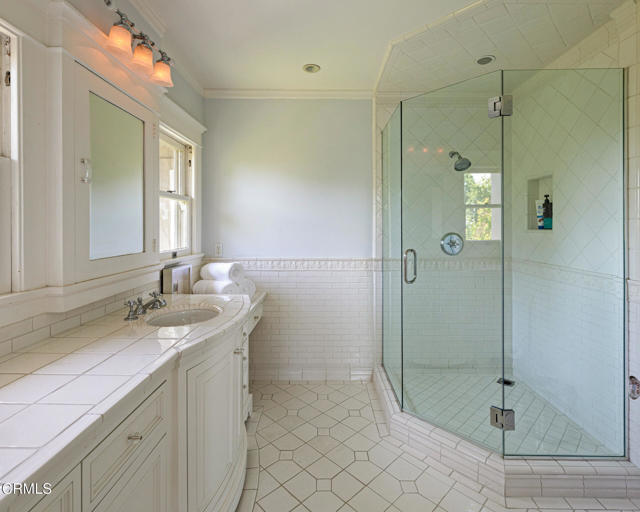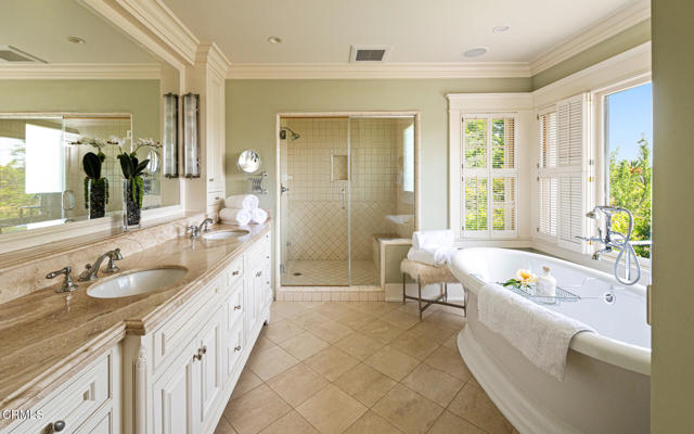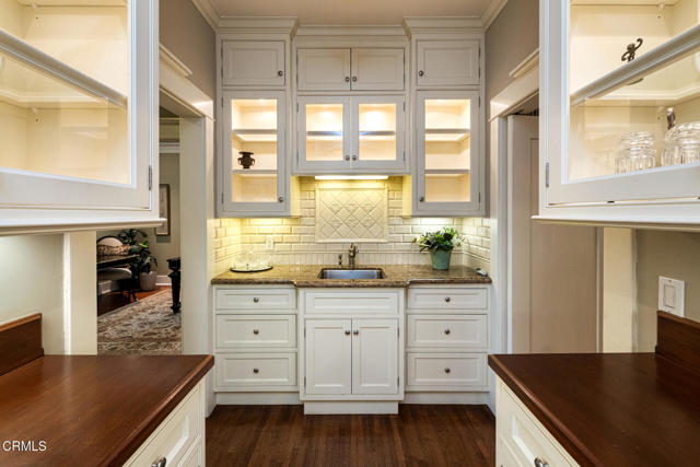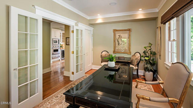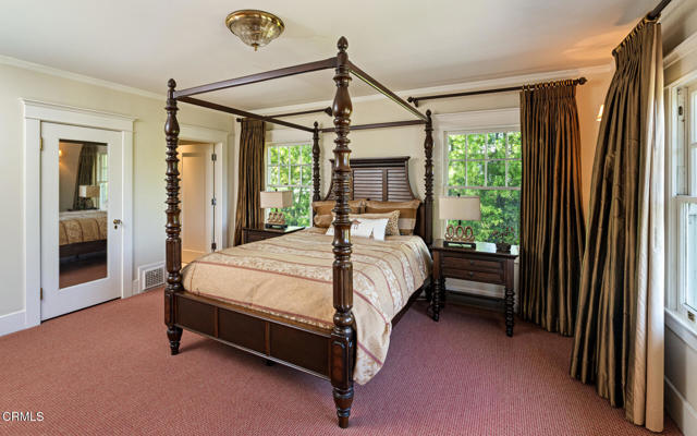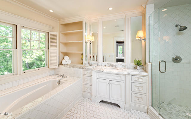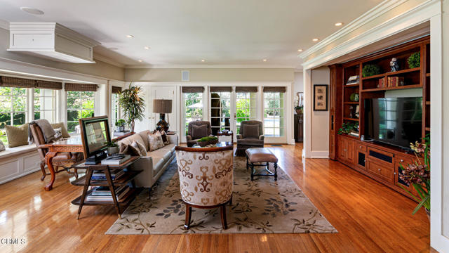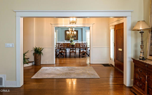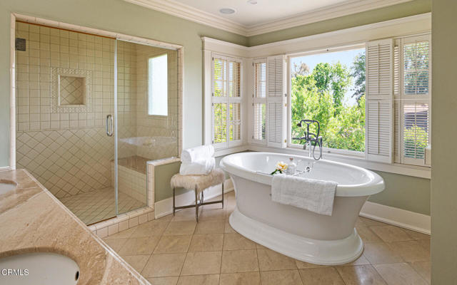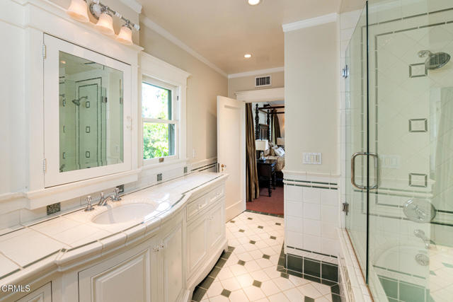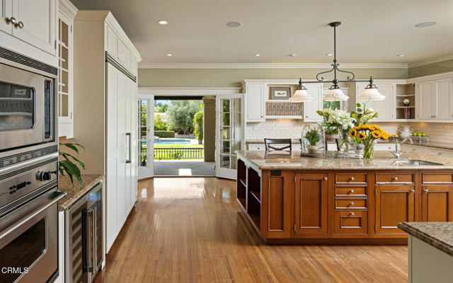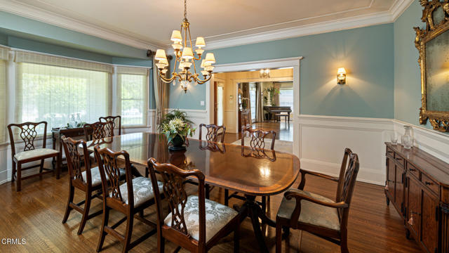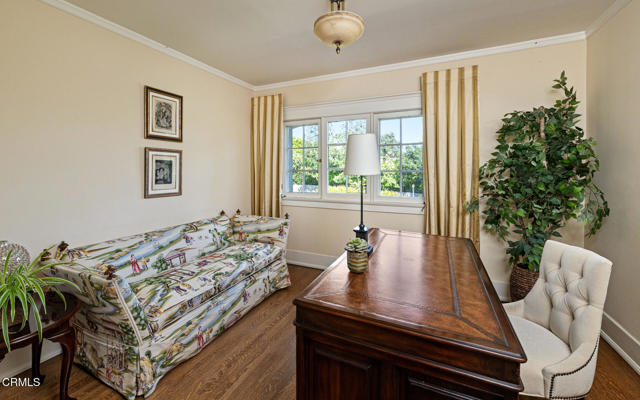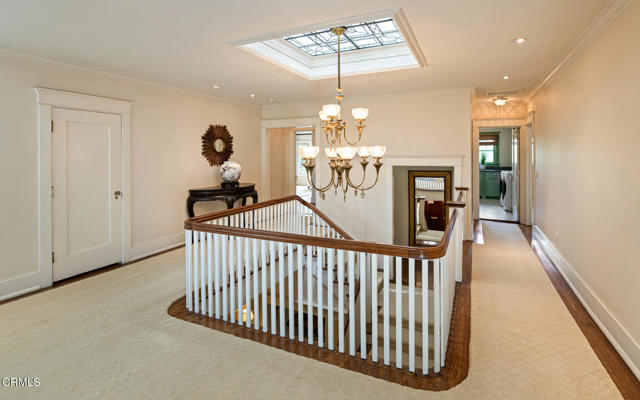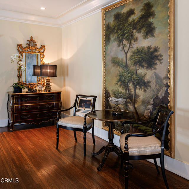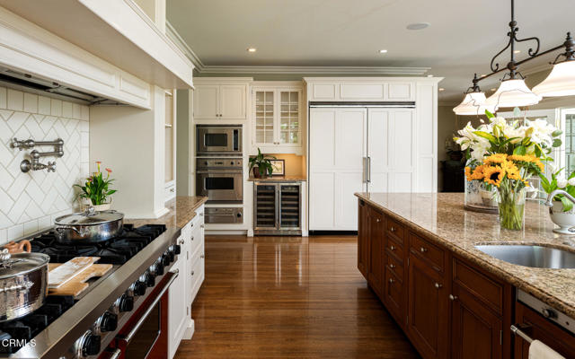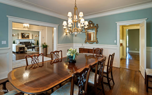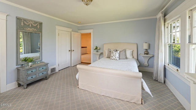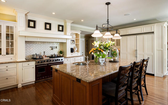 Situated on one of the most prestigious and coveted streets in Pasadena, this classic 1916 two-story estate blends timeless elegance with understated luxury and refined comfort. Set on a sprawling 32,794-square-foot lot, the residence is enveloped by lush greenery and mature landscaping, offering a serene sanctuary that perfectly balances grand scale with an intimate, harmonious atmosphere.An inviting foyer opens to the elegant living room, which is anchored by a magnificent statement fireplace. The graceful formal dining room, designed for sophisticated entertaining, is complemented by a professional butler's pantry. The beautifully appointed chef's kitchen features a substantial center island, high-end built-in appliances, abundant cabinetry, and a walk-in pantry. A charming breakfast nook flows seamlessly into the family room, complete with a built-in entertainment center and a picturesque bay window featuring a seated storage bench. French doors lead to a wrap-around patio, creating a seamless transition to the backyard for a true indoor-outdoor lifestyle. The main level is completed by a versatile den/office and a guest powder room.On the upper level, four en-suite bedrooms, an office, and a laundry room are centered around a landing illuminated by a stunning leaded-glass skylight. The primary suite is a true retreat, featuring a romantic fireplace, dual custom walk-in closets, and a spa-like primary bath with a steam shower, marble-topped dual sinks, and a jetted soaking tub. Private doors open to a secluded balcony overlooking the tranquil grounds. Three additional spacious en-suite bedrooms, each with updated baths and walk-in closets, provide comfort and privacy for family and guests alike.The exterior is an entertainer's dream, boasting expansive grounds with flowering gardens, a greenery trellis, and a sparkling pool and spa. Multiple seating areas, a fountain, and an outdoor fireplace offer an ideal setting for large-scale gatherings or quiet evenings under the stars. Additional features include hardwood floors, custom drapes and window coverings, a 4-zone HVAC system, a security alarm and video surveillance system, Sonos sound, and a gated driveway leading to a 3-car garage with EV charging and a fully paid-off solar system.Just moments from Old Town Pasadena and the South Lake Avenue District, this estate offers a rare opportunity to experience sophisticated living at its very best.