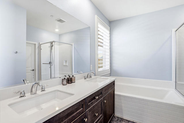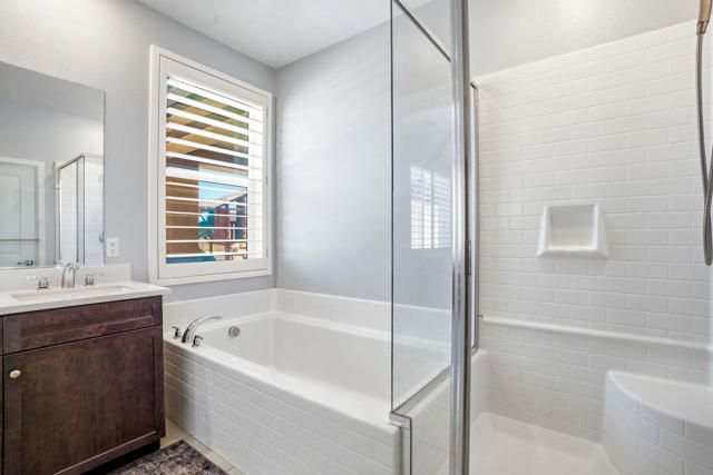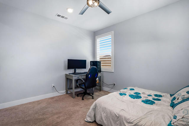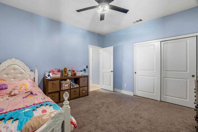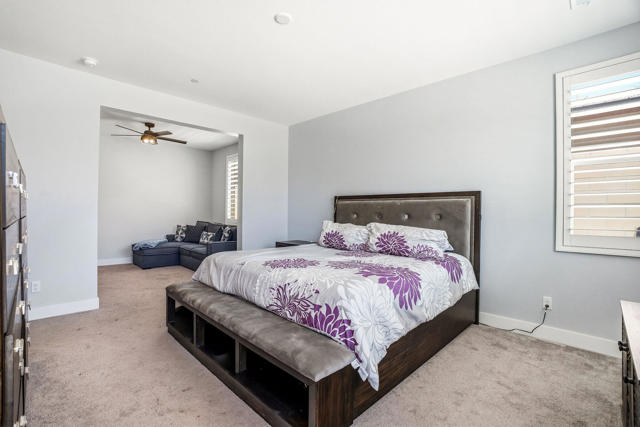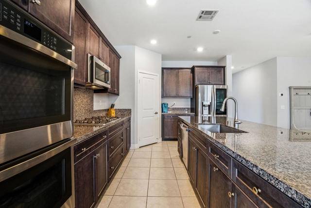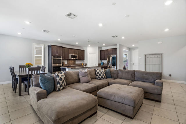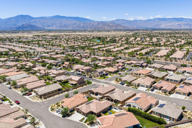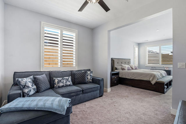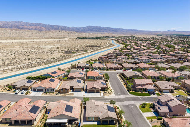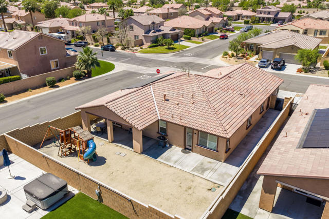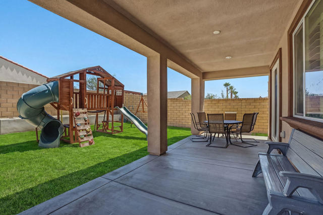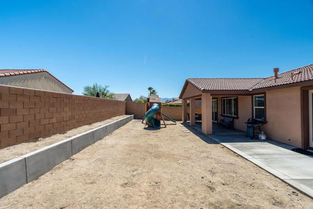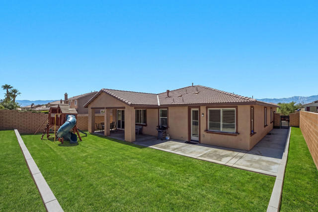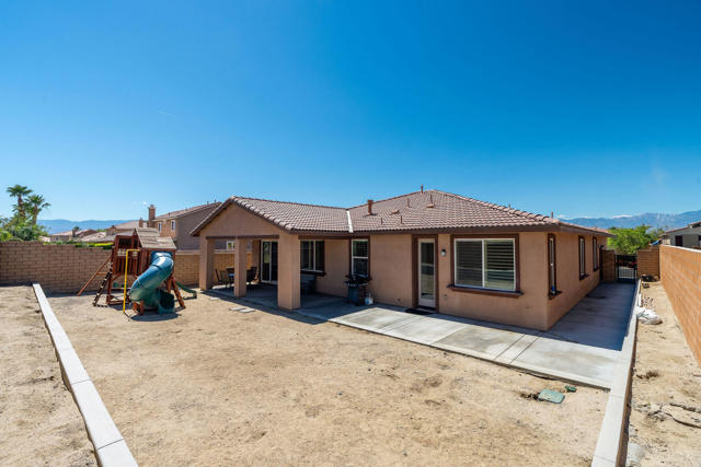 Located in the gated Paradiso community in North Indio, this 2021-built home offers 4 bedrooms, 2 bathrooms, and a bright open layout designed for comfortable everyday living. The living room creates a warm and inviting atmosphere, complete with a gas fireplace, making it a great space to relax or gather with family and friends.The kitchen is both functional and welcoming, featuring a large center island, granite countertops, stainless steel appliances with double ovens, and a spacious walk-in pantry. It flows seamlessly into the main living areas, making it ideal for both daily living and entertaining. The primary suite is generously sized and includes an added retreat that can be used as a sitting area, home office, or flexible space to fit your needs. It also features a walk-in closet and a beautifully designed bathroom with a relaxing soaking tub, creating a comfortable and inviting space to unwind at the end of the day.Step outside to a spacious backyard with a large open patio, perfect for outdoor dining, relaxing, or hosting gatherings. The yard offers plenty of space to personalize and create an outdoor setting that fits your style.Additional highlights include a 3-car garage, solar panels for energy efficiency, LED lighting throughout, a tankless water heater, and water-saving fixtures.Enjoy beautiful mountain views along with community amenities that include HOA-covered internet and cable, parks, walking paths, and a playground. This is a great opportunity to own a newer home in one of North Indio's desirable gated communities.