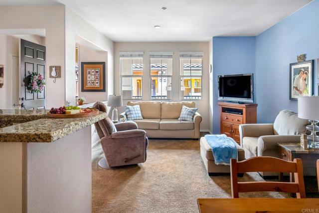 Welcome to 36 Via Sovana, a rare corner-unit gem in the highly sought-after Trevisio community of Santee. This bright, upstairs one-level home offers a spacious and functional floor plan featuring two bedrooms, two full baths, a generous living room, dining area, and an open kitchen with a full-size interior laundry room. The thoughtfully designed layout flows seamlessly from the living and dining spaces to the kitchen, creating an ideal setting for both daily living and entertaining. Additional highlights include plantation shutters, granite countertops, recessed lighting, panel interior doors, a GE appliance package, a brand-new water heater, and a new disposal. Fire sprinklers add peace of mind, while the private covered balcony with extra storage provides a perfect spot to relax and enjoy the natural light that floods the home. This desirable corner location offers enhanced privacy and features a garage plus a dedicated carport. Residents of Trevisio enjoy access to the community pool—perfect for sunny San Diego days. Conveniently located near shopping, dining, parks, top-rated schools, and 52 and 125 freeways, this home provides effortless connectivity while retaining a peaceful neighborhood atmosphere. Outdoor enthusiasts will love being just minutes from Mission Trails Regional Park (walkable), Big Rock Park, Cowles Mountain, Santee Lakes, Grossmont College, and the Kumeyaay Lane Campground, with miles of hiking, biking, and nature trails nearby. Best of all, you’re only about 14 miles from some of San Diego’s most popular beaches. Don’t miss this exceptional opportunity to own in one of Santee’s most desirable communities—schedule your showing today!