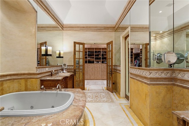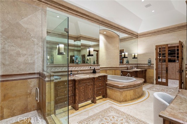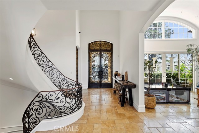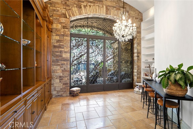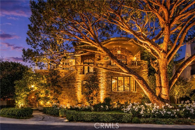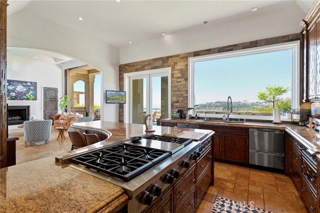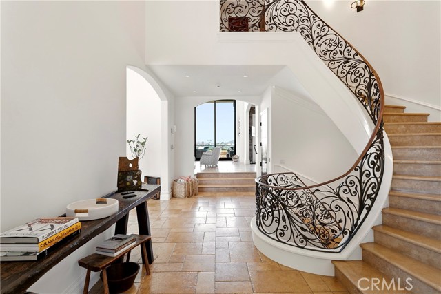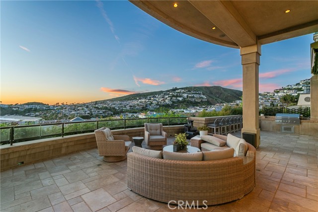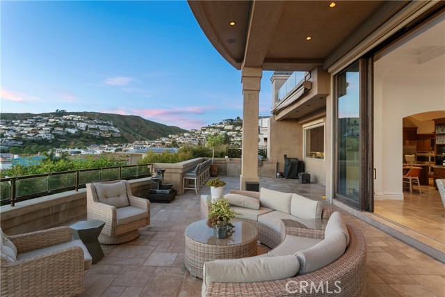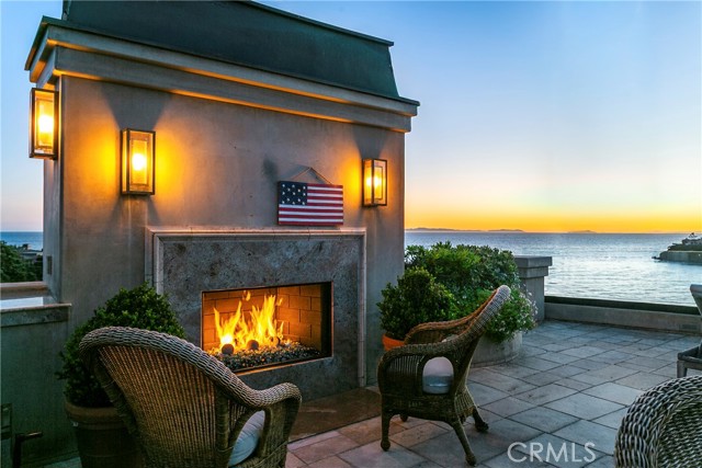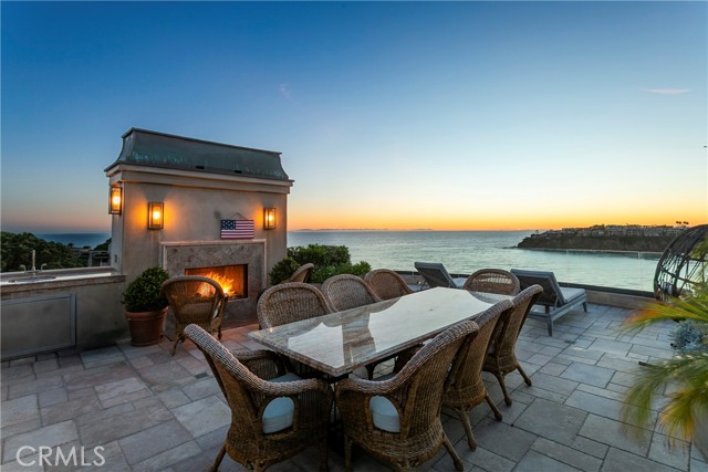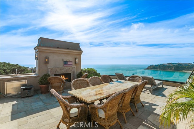 A residence of this caliber is rarely available. Set above one of Laguna Beach’s most dramatic stretches of coastline, this custom estate offers sweeping views of the Pacific, Catalina Island, and the rugged shoreline. Surrounded by the historic Smithcliffs pine trees, the property provides privacy and a unique sense of place. The architecture blends classic and modern influences, with interiors designed to connect seamlessly to terraces, gardens, and sun-filled outdoor spaces. The main level supports both entertaining and everyday living, beginning with a striking foyer and floating spiral staircase. The great room opens through large sliding doors to the main ocean-facing terrace. The kitchen features custom wood cabinetry, an oversized island, walk-in pantry, and professional-grade appliances from Wolf, Fisher & Paykel, Sub-Zero, and Miele. A formal dining room with a cross-vaulted ceiling opens to the outdoors through newer Fleetwood French doors. Approximately 7,119 square feet, the home includes four ensuite bedrooms and nine baths. The privately positioned primary suite opens to a meditation garden and includes two walk-in closets and a jetted tub. Additional features include handcrafted finishes, custom mosaics, wood and stone flooring, three fireplaces, multiple wet bars, a temperature-controlled wine cellar, upgraded AV system, newer generator, and an elevator. The lower level showcases an exceptional 11-car garage—an uncommon amenity in coastal Laguna Beach—ideal for collectors or those seeking a display gallery or workshop. The rooftop deck offers a private retreat with a fireplace, newer glass surrounds, above-ground spa, built-in BBQ, and dining area framed by expansive ocean views. This property represents a rare opportunity to own a home of significant scale, craftsmanship, and coastal presence in one of Laguna Beach’s most distinctive neighborhoods.