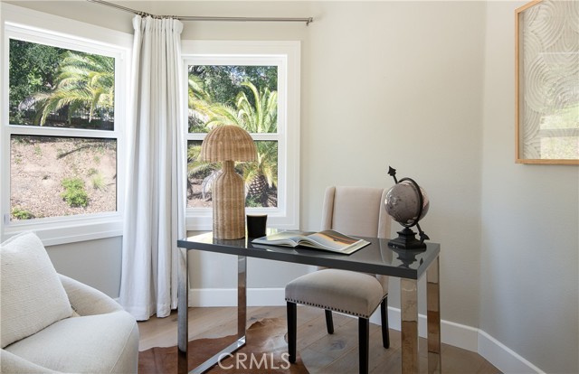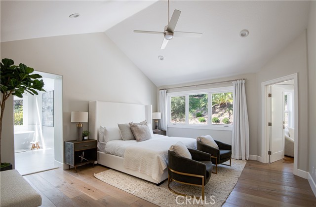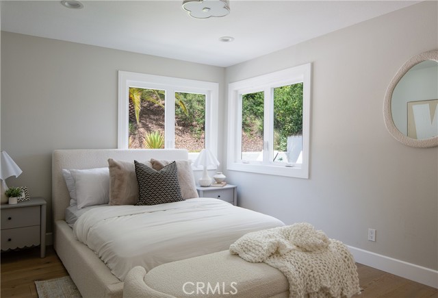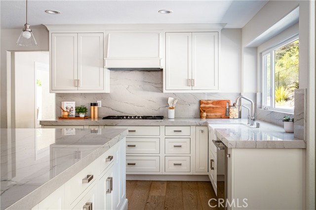 Beautifully updated home located on a quiet cul-de-sac in the highly sought-after Crescent Oaks neighborhood of North Ranch. Situated on an expansive over 15,000 square foot corner lot, this residence offers approximately 3,330 square feet of living space, five bedrooms, and three bathrooms. Featuring a bright and open floor plan, the home welcomes you with a two-story entry, custom staircase, high ceilings, and new hardwood floors throughout. The kitchen is centered around a large island and opens directly to the family room, complete with quartzite countertops and high-end appliances. The flexible layout includes one bedroom on the main level and four upstairs. The primary suite offers a spacious walk in closet and a remodeled bathroom with clean, modern finishes. The private backyard features drought-tolerant landscaping and a custom firepit, with ample space to add a pool. Recent upgrades include new windows, roof, HVAC system, and a tankless water heater. Located within the highly acclaimed Conejo Valley Unified School District, with excellent private school options nearby, and just minutes from shopping, dining, and nearby amenities, set within one of Westlake Village’s most desirable neighborhoods.