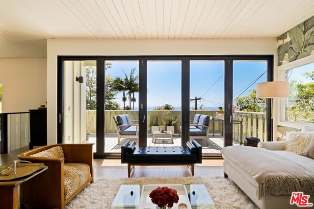 Located in a quiet pocket of South Laguna between the rolling green hills and the ocean, just minutes from the Dana Point border, this 2-bedroom, 2-bathroom coastal mid-century beach bungalow offers stunning ocean views and timeless California style. Enter through the front porch into an entryway that leads to the tranquil primary bedroom and bathroom suite on the lower level. A custom wood and glass staircase leads to the upper level and opens to a spacious living room with integrated kitchen and dining areas, all oriented to capture expansive ocean views and west-facing sunsets. A wall of retractable sliding glass doors fully opens to a large deck, creating seamless indoor-outdoor living with treetop and ocean views and refreshing sea breezes. The second bedroom with an en-suite bathroom, is located off the living area. Additional features include a large garage with storage and a washer/dryer area, plus an extra parking space on the resident-only lane. Enjoy the ultimate Laguna Beach lifestyle in this exceptional home, just a short three-block walk to the beach.