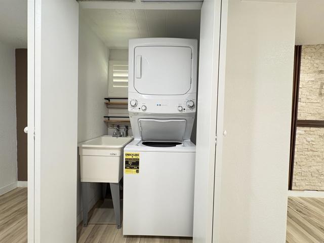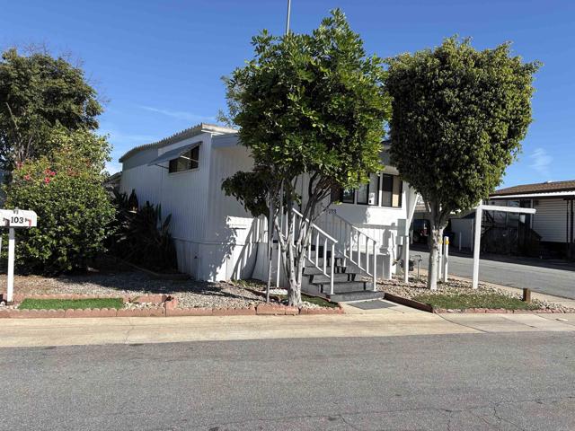 Senior Community. $1,025 lot rent. The seller just extended the second bedroom! This gem of a home has been tastefully remodeled! This modern 2 bed, 1 bath home sits on a great corner lot. The spacious kitchen offers beautiful cabinetry, brick/stone wall backsplash, bright and airy. It also includes the appliances and beautiful pendant lights. Shelving and lots of storage. The very large expanded living room offers an accent wall, as well as a mini-split heat/air unit. There is a laundry closet; washer/dryer and a desirable utility sink. This home features lovely window shutters, beautiful flooring and clean finishes throughout. Drywall throughout and modern lighting. Main bedroom has a large closet with built-in drawers. Great size second bedroom has been expanded, and it would make the perfect office, reading or craft room. Updated bathroom includes a beautiful sink vanity, a tub/shower combo and a newer commode. There is parking for two cars, a covered patio to enjoy the outdoors, a storage shed, guava and lemon trees. No local property taxes = big savings to you! Safari Mobile Lodge offers its residents a swimming pool, a beautiful clubhouse and a library within the clubhouse. All this home needs is you! Call to make your viewing appointment.