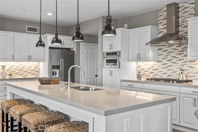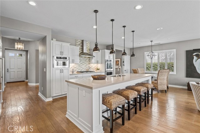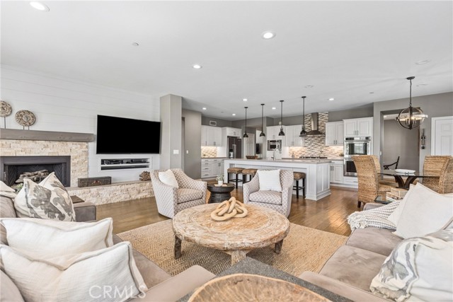 Welcome to 10 Camino Botero, a beautifully upgraded single-level home located in a highly sought-after 55+ gated community in Talega, San Clemente. This light-filled residence offers an open-concept layout with wide-plank wood flooring, high ceilings, and seamless indoor-outdoor flow, creating a warm and inviting atmosphere throughout. The spacious living room is anchored by a stunning stacked-stone fireplace and custom media wall, perfect for both relaxing and entertaining. At the heart of the home is a chef’s kitchen featuring a large quartz island, stainless steel appliances, double ovens, a gas cooktop with designer hood, and a stylish mosaic backsplash, all complemented by ample cabinetry and modern finishes. The living and dining areas open effortlessly to a private backyard, offering a peaceful setting to enjoy the coastal breeze year-round. Additional highlights include a desirable single-level floor plan with no interior steps, recessed lighting throughout, and an attached 2-car garage. Located within a gated active adult community in Talega, residents enjoy a quiet, well-maintained environment with access to nearby walking trails, golf, shopping, dining, and San Clemente’s world-class beaches just minutes away. This is a rare opportunity to own a turnkey home in one of San Clemente’s premier 55+ communities.