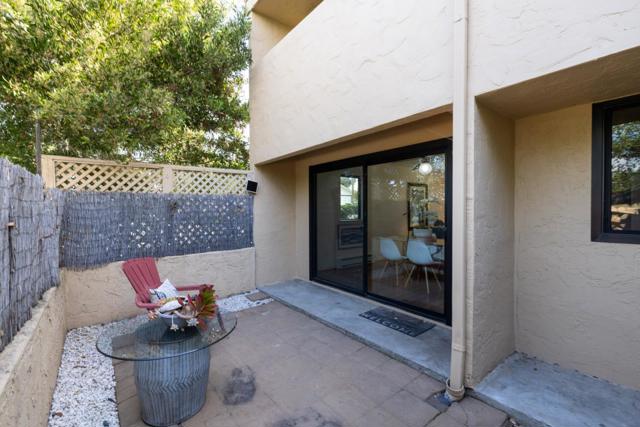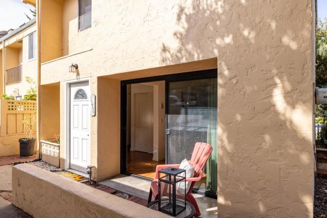Ocean views from the kitchen and bedroom set the tone for this inviting Seaside location. The comfortable main floor features a combined living and dining area with wood-style flooring, a spacious kitchen with all-electric appliances, plus a convenient half bath and in-unit laundry. Sliders open to a patio with private yard space and storage shed. Easy parking located in front of the unit. Ideally situated near schools, shopping, and everyday amenities in a sunbelt location.
