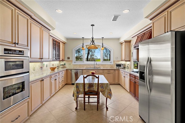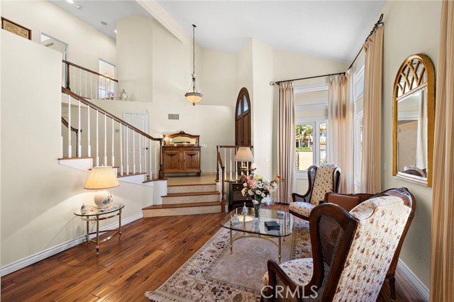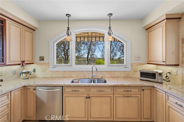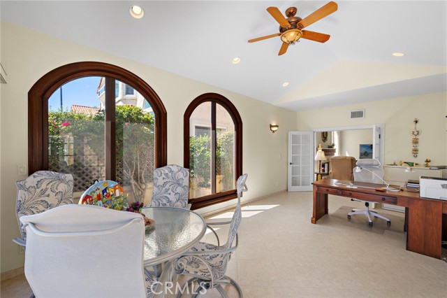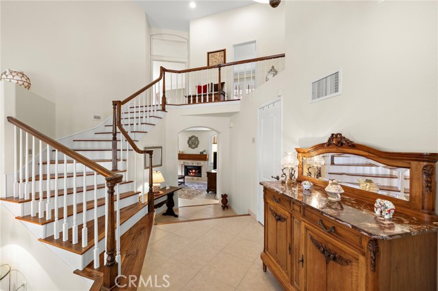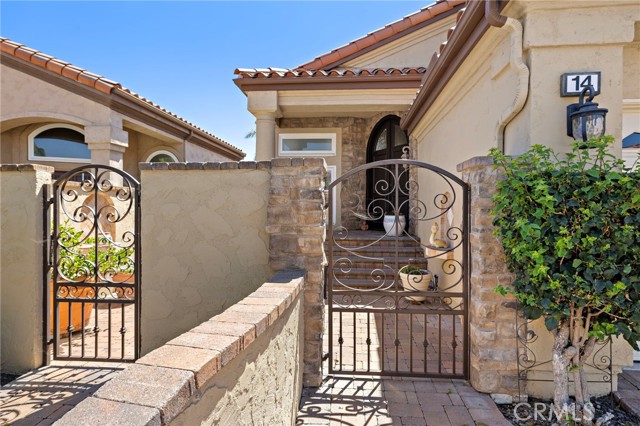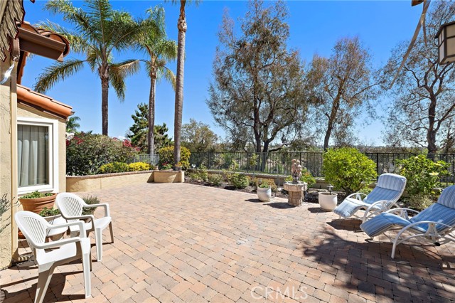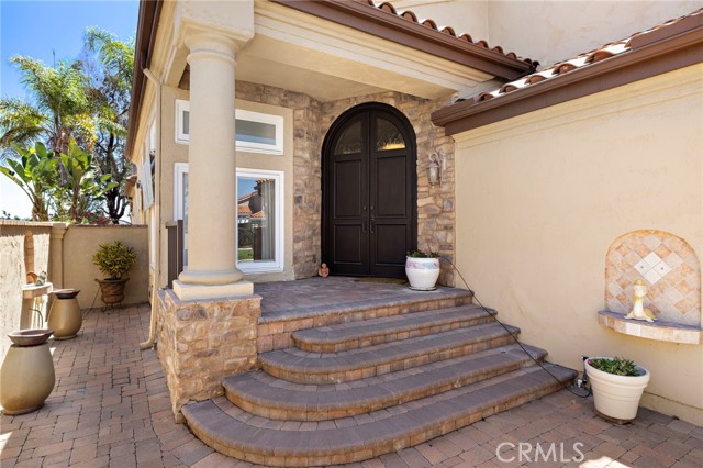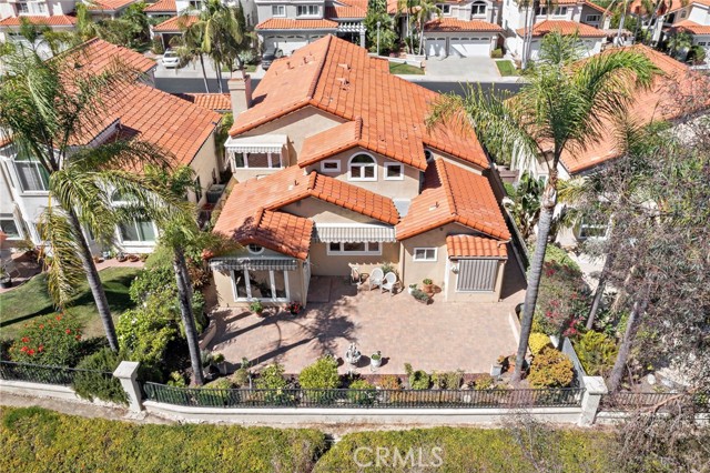 Welcome to this exquisitely upgraded 5-bedroom, 3.5-bathroom home offering 3,018 sq. ft. of luxurious living space, perfectly situated on an expansive lot with a partial scenic ocean view. From the moment you arrive, the Tuscan-inspired exterior makes a striking impression with custom-designed Renaissance windows and doors, professionally landscaped planter areas, high-end entry gates, and a sweeping decorative Olsen Pavers driveway leading to a spacious 3-car garage—delivering exceptional curb appeal. Step through the grand arched double doors and you'll immediately feel the pride of ownership in every detail. The entry opens into a warm and welcoming living and dining area with rich, handscraped Rustic Walnut wood flooring that flows seamlessly throughout much of the downstairs. Ideal for multigenerational living, a private, large downstairs bedroom with en-suite bath offers comfort and flexibility. The family room is an inviting retreat featuring a custom fireplace and opens into a bright and airy vaulted sunroom/office through elegant French doors. Bathed in natural light from expansive Renaissance arched windows, this versatile space is perfect for working, relaxing, or entertaining. The open-concept kitchen is a chef’s dream—featuring a stunning arched picture window with backyard views, granite countertops, designer tile backsplash, top-of-the-line KitchenAid appliances, and a generously sized walk-in pantry with custom shelving. Upstairs, the expansive primary suite is a true sanctuary, complete with a spacious retreat area that can easily function as an additional bedroom or private lounge. The spa-inspired en-suite bath is beautifully appointed with marble floors, an Aruba Gold travertine shower, and matching vanity countertops that add elegance and warmth. Step outside to a beautifully landscaped backyard oasis with lush greenery, an elaborate Olsen Pavers patio, and thoughtfully designed planter areas—perfect for entertaining or enjoying the peaceful coastal breeze. From here, take in the partial ocean view and serene atmosphere. Enjoy resort-style living in the desirable Marina Hills community, featuring a pool, spa, pickleball and tennis courts, clubhouse, BBQ areas, and year-round neighborhood events. Ideally located just minutes from Salt Creek Beach, the Waldorf Astoria Resort, and Dana Point Harbor, it offers the perfect blend of coastal charm and convenience.