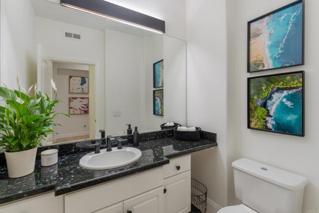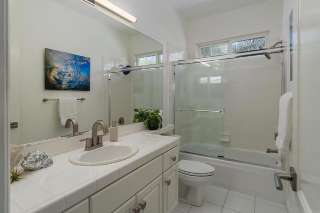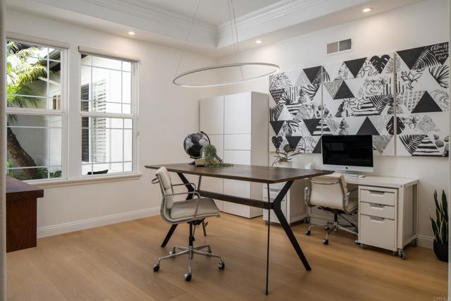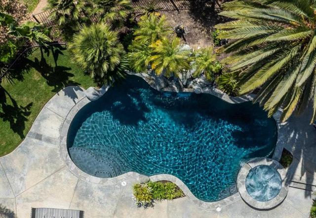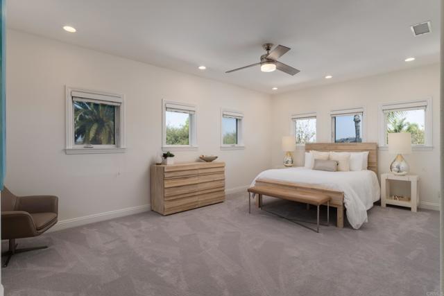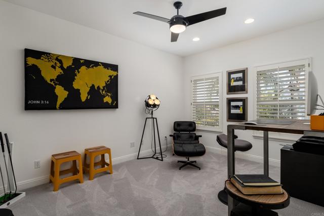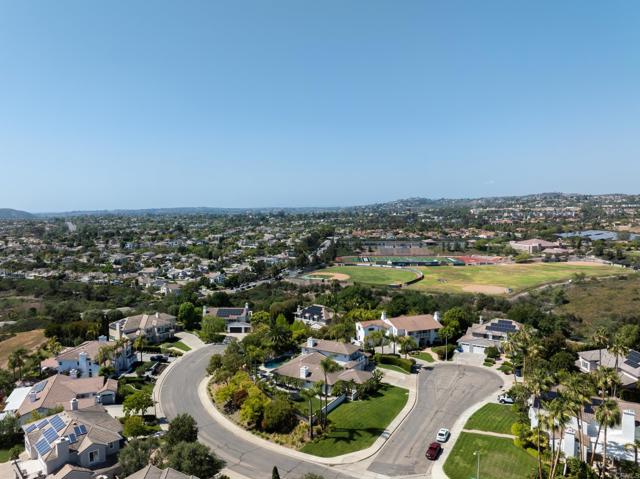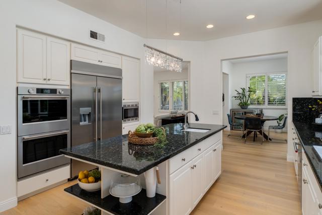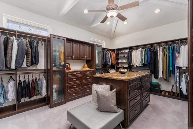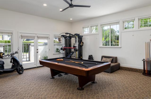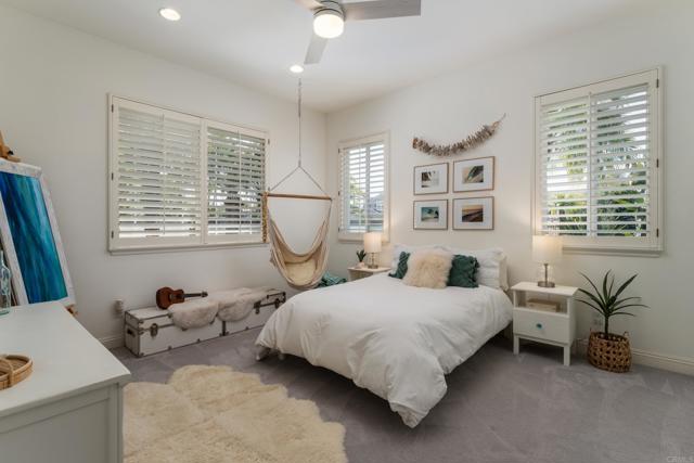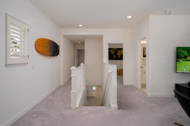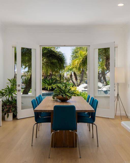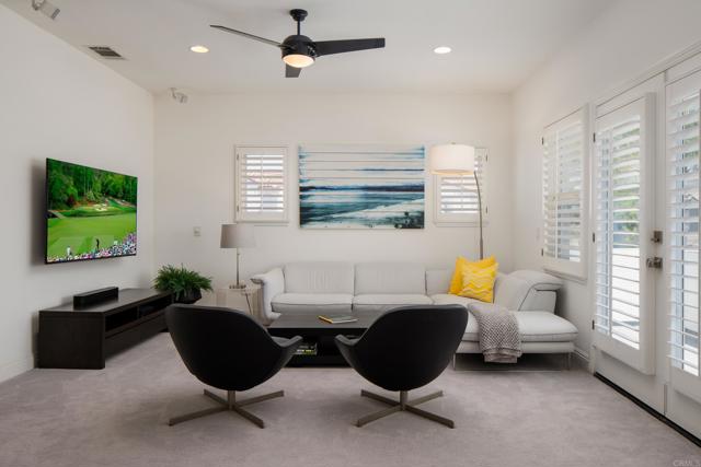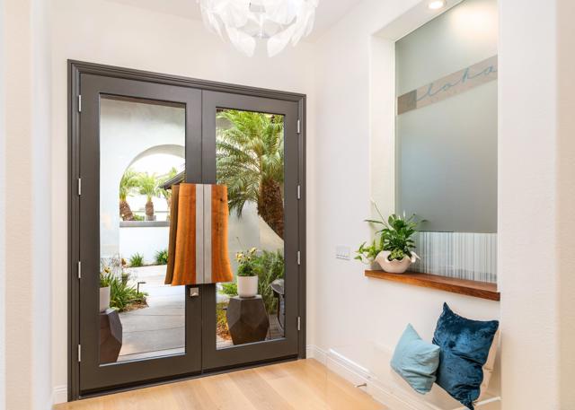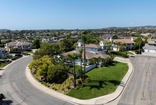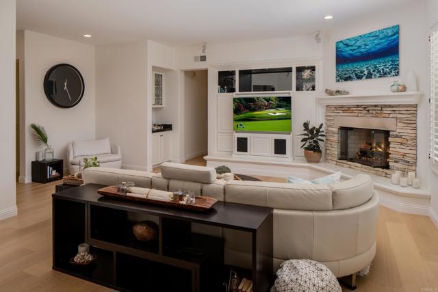 RARELY does a property come to market that TRULY HAS IT ALL: a great neighborhood, large private parcel, gorgeous grounds, west-facing backyard & a flexible floorplan. Located on a quiet cul-de-sac in THE RANCH, an enclave between Olivenhain & La Costa, this exceptional estate offers PRIVACY, scale & COASTAL ELEGANCE. Set on the “developer’s own” PRIME .61 ACRE LOT, it feels like an elevated tropical island with ONLY ONE adjacent neighbor. A private courtyard leads to custom glass entry doors with HANDCRAFTED WALNUT live-edge handles. Inside, nearly 5,000 sq ft of thoughtfully designed space offers STYLE & FLEXIBILITY. The formal living room, currently styled as a spacious dining area, features a WALL OF WINDOWS framing a CASCADING WATERFALL, POOL & PALMS. The formal dining room has been thoughtfully repurposed as a stylish family office. At the HEART OF THE HOME, the inviting family room centers around a STONE FIREPLACE with expansive windows. The ISLAND KITCHEN opens to a breakfast area with French doors to the backyard. A large RECREATION ROOM serves as the ACTIVITY HUB, with space for a pool table, gym, lounge & putting practice. LIVES LIKE A SINGLE STORY with a primary suite & 2 additional bedrooms on the main level. While upstairs there are 2 more bedrooms & a living room with deck, ideal for guests, office, bonus space or MULTIGENERATIONAL LIVING. The primary retreat features French doors to the yard, a SPA-LIKE bath & custom dream closet. The backyard is a PRIVATE RESORT with a dramatic waterfall, freeform pool & spa, outdoor kitchen & lush tropical landscaping and a custom designed outdoor shower. Located in the highly regarded Encinitas School District and just minutes from beaches, shopping, and dining.