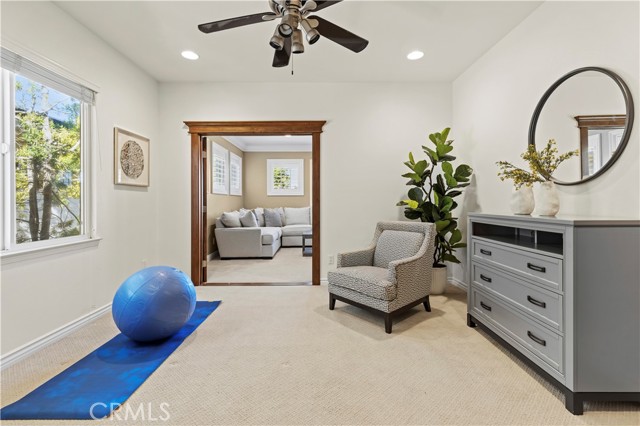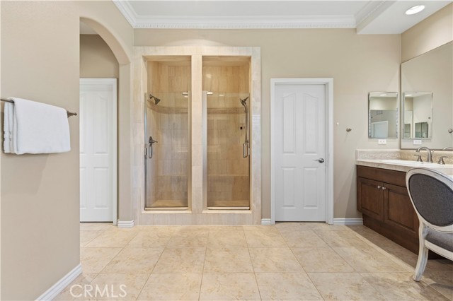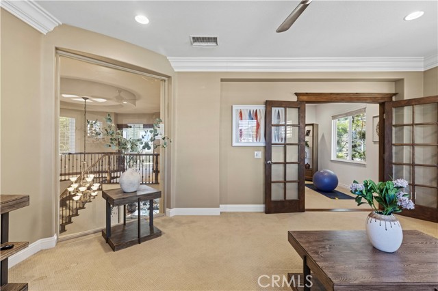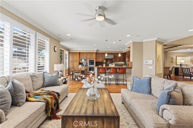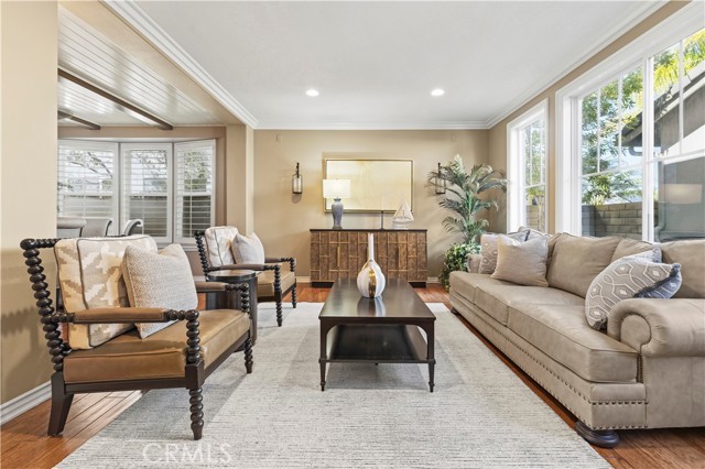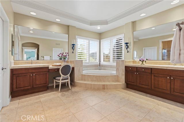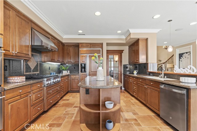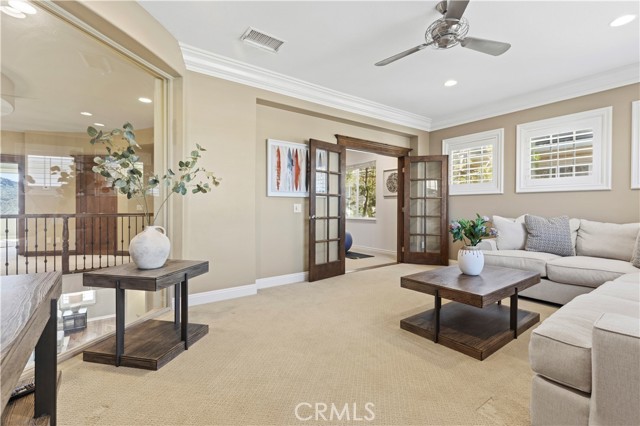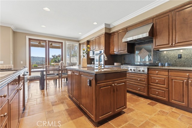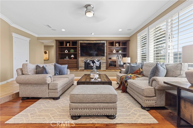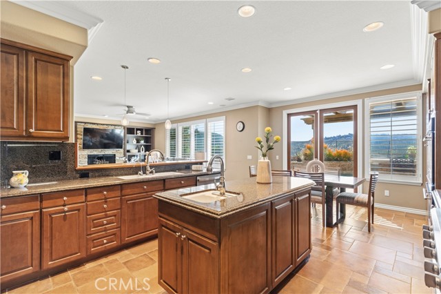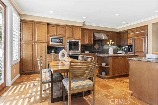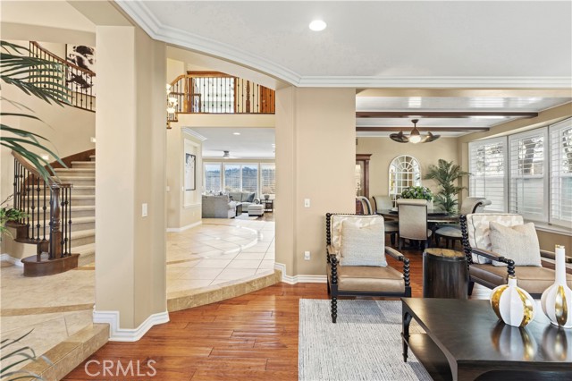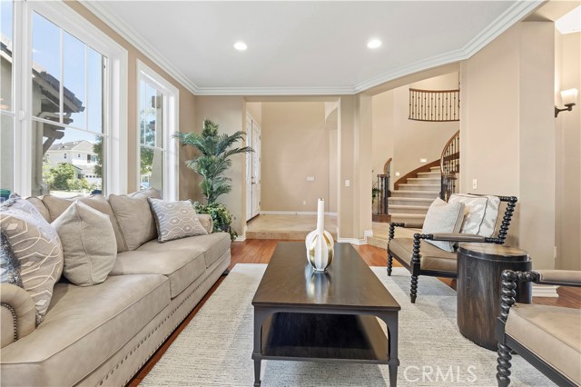 Tucked away in one of the most coveted locations within Hillcrest Estates, 28821 Drakes Bay offers a rare combination of privacy, luxury, and breathtaking natural beauty—backing directly to Aliso Creek/Wood Canyon with no rear neighbors and unobstructed sit-down canyon views from both levels. This expansive residence showcases the largest floor plan in the community, enhanced with a builder-option 5th bedroom and a thoughtfully designed custom bonus room—ideal for a home office, media space, gym or playroom. A grand foyer welcomes you with soaring ceilings and a striking circular staircase, setting the tone for the home’s elegant interior. Thoughtful upgrades throughout include custom craftsman doors, crown molding, designer baseboards, central vacuum, and integrated sound wiring. The gourmet kitchen is designed for both everyday living and entertaining, featuring dual sinks, a center prep island, and a distinctive wood breakfast bar, all opening to a light-filled breakfast nook with French doors that frame the stunning canyon backdrop. The adjacent family room offers warmth and sophistication with a stone fireplace and custom built-ins. A highly desirable main-level en-suite bedroom provides flexibility for guests or multi-generational living. Upstairs, the expansive primary suite serves as a private retreat, complete with a dual-sided fireplace, sitting area, and sweeping canyon views. The spa-inspired primary bath includes dual vanities, a soaking tub, separate shower, and an oversized walk-in closet. Additional upstairs bedrooms include a versatile expanded bonus/playroom. Step outside to a resort-style backyard designed for unforgettable entertaining—featuring a saltwater PebbleTec pool and spa, cascading waterfalls, built-in BBQ island with bar seating, fire pit, and beautifully curated landscaping—all set against panoramic sunset views. Additional highlights include repiping and numerous custom upgrades throughout. Solar panels are all paid off! This is a rare opportunity to own a premier view property in one of Laguna Niguel’s most desirable communities.