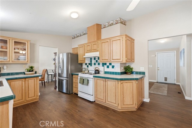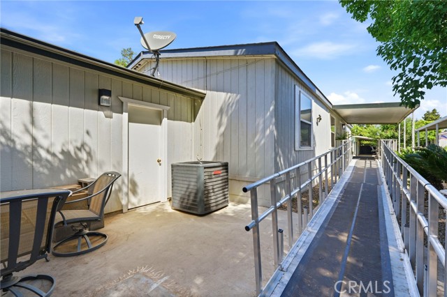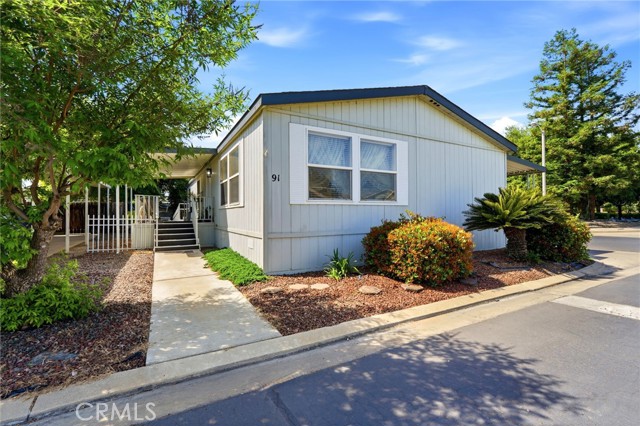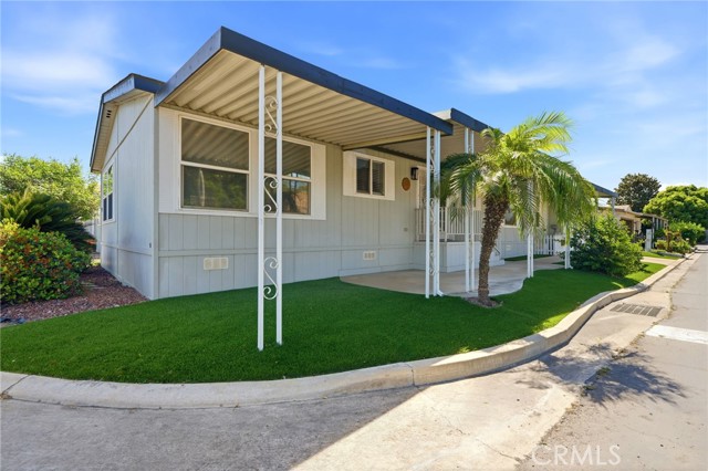 Welcome to Westwood Village, a gated 55+ community and one of the most desirable mobile home parks in Porterville. Conveniently situated directly across from the clubhouse and office, this home offers easy access to community amenities including a pool, billiards room, library, kitchen, BBQ area, fire pit, Bocce ball and Pickleball courts. The property features inviting curb appeal with low-maintenance faux grass, a covered front porch, and a newly added ramp for added accessibility. Inside, this 3-bedroom, 2-bath home offers a comfortable and functional layout with a cozy living area that connects to the dining space. The kitchen is equipped with a brand-new, never-used dishwasher and a new deep basin sink, along with ample cabinetry for storage. The main bedroom includes dual vanities with both a tub and separate shower. A nicely sized indoor laundry area is also included, with washer, dryer, and refrigerator. Outside, the home continues to offer thoughtful updates including new pavers in the backyard and a new gate along the south side of the property. A spacious 2-car garage adds convenience, along with a brand-new garage door opener and a recently installed A/C system. Enjoy low-maintenance living in a well-established community—schedule your private showing today!