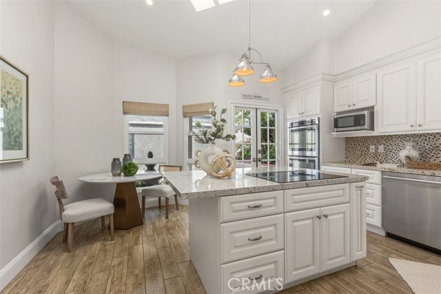 This stunning single-level villa offers the epitome of coastal luxury on a rare, oversized, and exceptionally private lot, tucked away on a peaceful cul-de-sac in the prestigious, guard-gated Niguel Shores community. Fully remodeled from top to bottom, this serene hideaway radiates timeless coastal charm with modern upgrades throughout. Step through the front door where this inviting home features soaring ceilings and skylights that bathe the home in abundant natural light. The heart of the home is the completely reimagined kitchen, seamlessly connected to a charming courtyard via French doors—ideal for effortless indoor-outdoor entertaining and al fresco dining. An open-concept flow unites the formal dining area with the family and living rooms. French doors off the living room lead to a private back patio enveloped in lush landscaping that amplifies the relaxed coastal vibe. The impressive primary suite is complete with French doors opening to the patio and a spa-like ensuite bath designed for ultimate relaxation. A secondary bedroom boasts high ceilings, direct courtyard access, and beautiful wood-look porcelain tile flooring that flows throughout the home. The adjacent guest bath offers a beautiful shower and dedicated vanity. Recent high-end updates include a new oversized HVAC system with fresh ducting, complete roof replacement, new water heater, and energy-efficient windows and sliding doors. Another standout feature is a large private driveway, a rarity in not only the Villas but also all of Niguel Shores (also lots of guest parking nearby). Residents enjoy exclusive amenities such as a sparkling pool and spa, tennis and pickleball courts, a private beach bluff park, and private beach access to name a few. Perfectly positioned moments from Strands Beach, Dana Point Harbor, fine dining, boutique shopping, and iconic resorts like the Waldorf Astoria and Ritz-Carlton, this villa delivers the ultimate blend of tranquility, sophistication, and coveted coastal living.