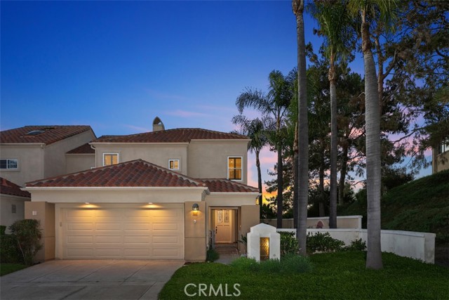 Rarely available in the gated enclave of Siena at Marina Hills, this remodeled two-story home offers hillside, city light, and Saddleback Mountain views, a private cul-de-sac location, and a light, functional layout. Set on an approximately 6,840 sq ft private corner lot, the property features a wraparound yard, strong sunset exposure, and multiple outdoor areas ideal for everyday living and entertaining. Approximately 2,241 sq ft with 3 bedrooms and 2.5 baths. The home has been thoughtfully updated throughout with a clean, cohesive feel. The remodeled kitchen features brand-new appliances, designer countertops and backsplash, and newer cabinetry, opening seamlessly to the main living areas. The living spaces are open and inviting, with vaulted ceilings, abundant natural light, and two fireplaces. Upstairs, the primary suite captures the views and opens to a private deck. Bedrooms include updated closets and designer carpeting. All three bathrooms have been upgraded with brand-new vanities and updated finishes, adding to the home’s move-in-ready appeal. The backyard offers renovated hardscape, open views, a BBQ island, and multiple seating areas. A gated front courtyard with a fountain, along with a separate patio off the breakfast nook, provides additional outdoor space and privacy. Additional improvements include fresh interior paint, updated lighting and fixtures, new interior and sliding doors, whole-house water treatment, reverse osmosis, tankless water heater, epoxy-coated garage with built-in storage cabinets, extended driveway, and ample guest parking, a rare benefit of the corner cul-de-sac setting. Residents enjoy access to Siena’s private pool and spa, along with Marina Hills amenities including a pool, clubhouse, tennis, pickleball, and trails leading toward Salt Creek Beach, the Waldorf Astoria, and Monarch Beach Golf Links.