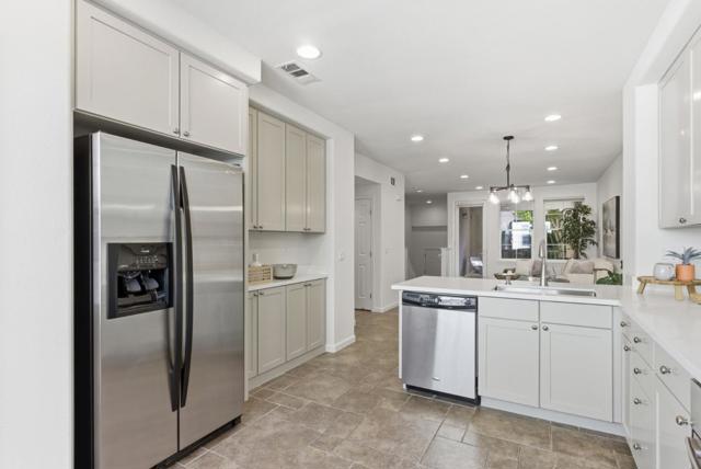 Freshly updated end unit in the heart of Sunnyvale! Newly painted with a refreshed kitchen, this bright home is move-in ready. Open living, dining, and kitchen floorplan flows to a covered balcony deck perfect for entertaining. Gourmet kitchen features a breakfast bar, pantry, ample cabinet space, stainless steel appliances, and sleek countertops. Primary suite with walk-in closet; second bedroom conveniently across the hall. Indoor laundry room with extra storage. Attached 2-car tandem garage plus guest parking. Quiet community with clubhouse. Prime location close to Apple Park, Caltrain, Downtown Sunnyvale, Whole Foods, Costco, top tech companies, shopping, and dining!