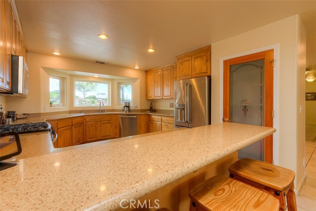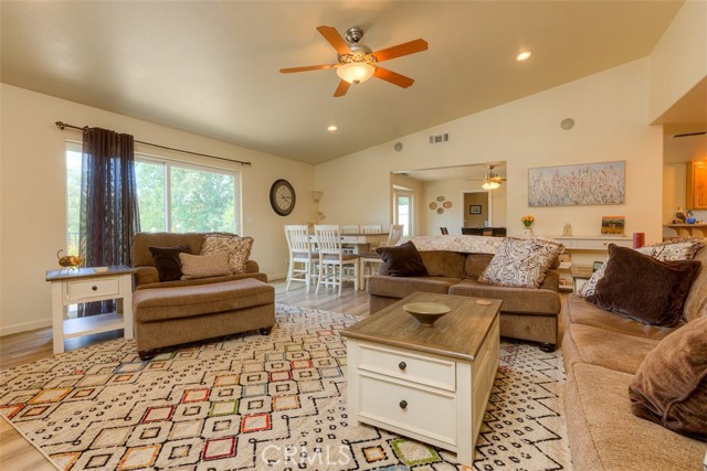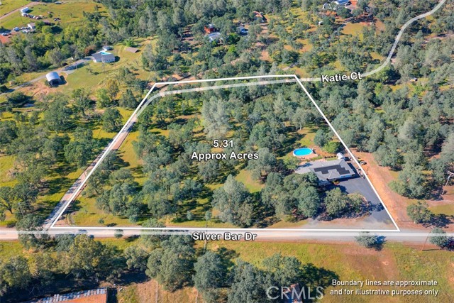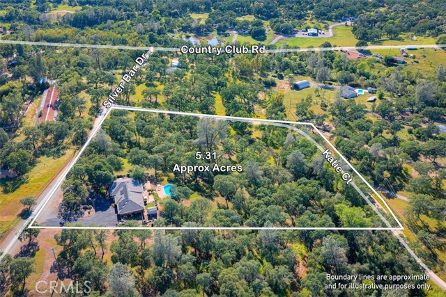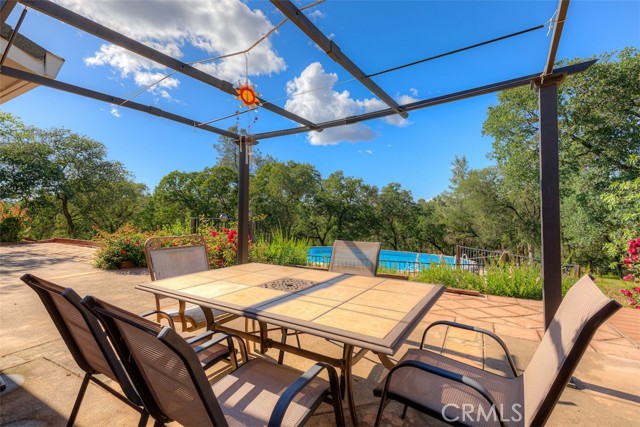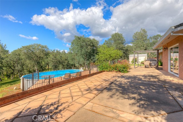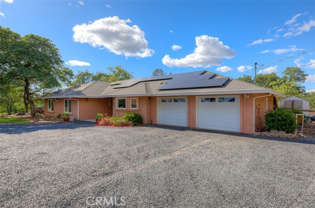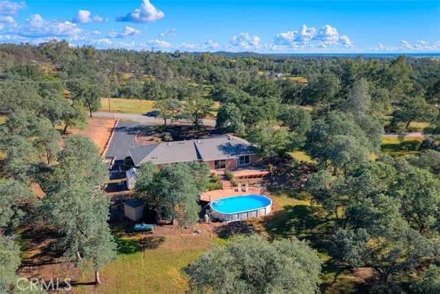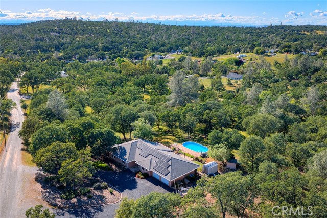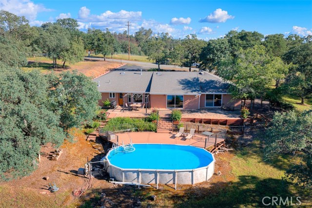 Home Sweet Home! This lovely custom home on approx. 5.31 acres, was built in 2005, offers all the peace & serenity COUNTRY life has to offer! From the circle drive find the 2245 sq ft, 3 Bedrooms/2.5 bath home! Enter into the tiled foyer, and find the spacious living room, w/high ceilings, recessed lighting, cozy stove in corner, and open views of patio & pool! The kitchen & dining areas have bay windows also bringing in the outside views! Kitchen boasts custom cabinets & modern counters, stainless appliances, tile flooring, & a pantry! Formal dining area separated by breakfast bar! Off the kitchen find a separate bright, laundry room, w/plenty of storage, a folding counter, utility sink & exit to outside. Down the tiled hall find the 1/2 bath, convenient for guests, & another full bath, close to the bedrooms w/mirrored closet doors, & carpet. Primary bedroom is spacious with slider out to patio above pool! Primary bath offers jet tub, separate shower, dual sinks, custom tiled vanity, plenty of storage! Outside, backyard find the above ground pool, patio & decking, perfect for entertaining, & overlooking the acreage & manicured oaks! Bring your critters to enjoy this space! The eaves have been enclosed & vented, rain gutters all around. Attached garage! Owned solar benefits your energy savings! What an amazing property, with plenty of room to park your RVs, rural, yet minutes from the Lake & town, & all the beauty & recreation Oroville has to offer! Contact your favorite Agent/REALTOR today, to make an appt to see this awesome place that you will call HOME!