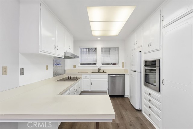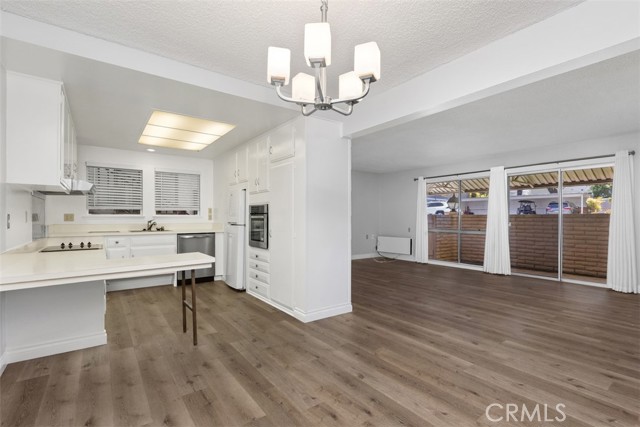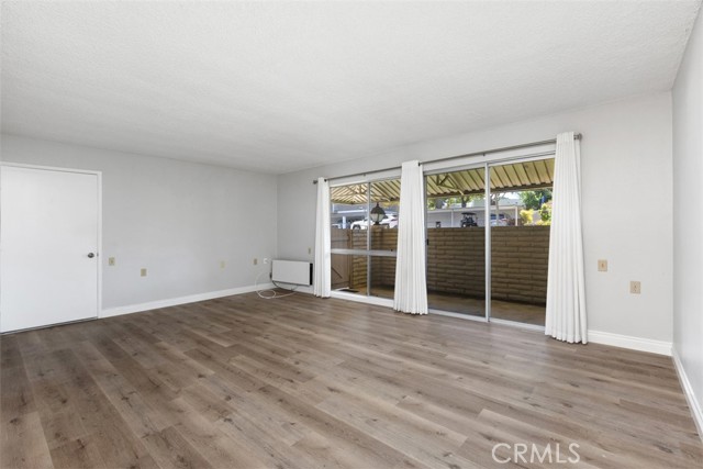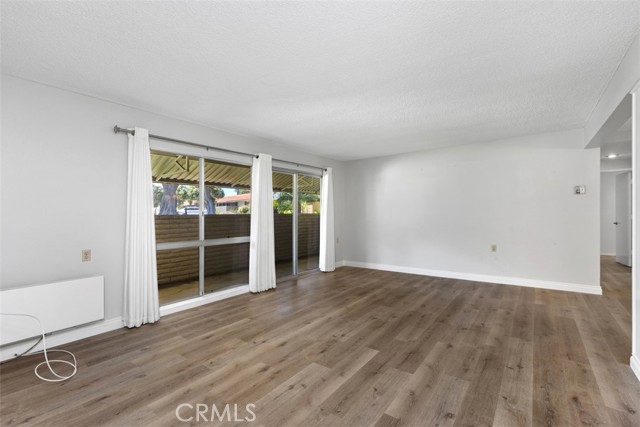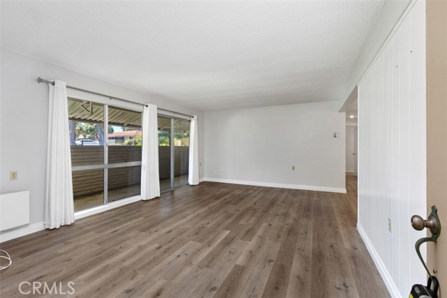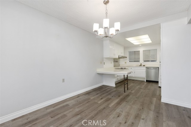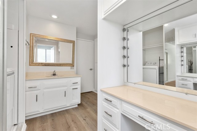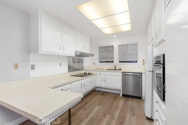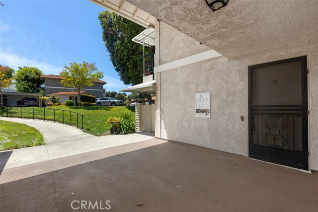 No steps! Ground floor unit with an outside patio. Quiet location close to parking. Open floor plan in this 55 plus commuity with 2 bathrooms. No carpet, instead luxury vinyl in most rooms. Included is a full sized washer and dryer in the master bedroom closet. Very light and bright. Laguna Woods is an incredible community: 27 hole golf course, tennis, paddle tennis, pickle ball, paddle tennis, 2 fitness centers, 7 clubhouses, 5 pools, an equuestrian center, and more including approximately 200 clubs and organizations you may want to join. In addition, there is bus transportation in the community and shopping is very close by.