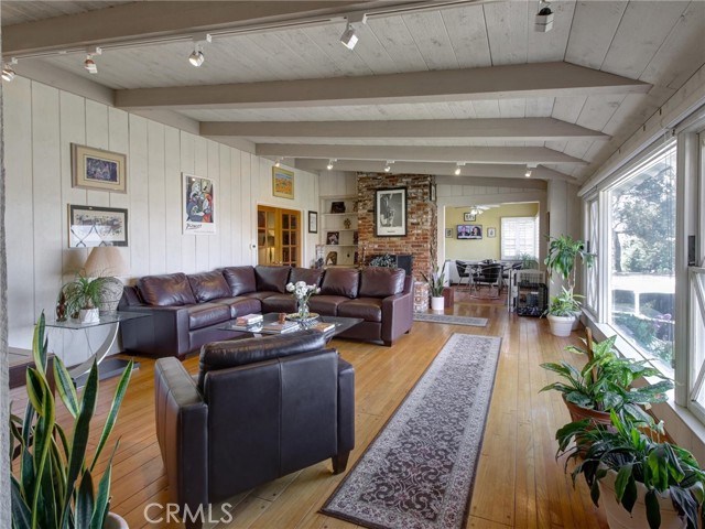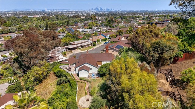 Commanding breathtaking, unobstructed views of the Downtown Los Angeles skyline, this 3-bedroom, 3-bathroom residence at 5390 Stillwater Drive is a rare offering in the coveted Baldwin Hills enclave. Set on an expansive 19,000+ square foot lot, the property delivers exceptional scale, privacy, and outstanding potential for expansion, including the possible addition of an accessory dwelling unit (ADU) (buyer to verify). Sunlight fills the main living and dining areas, where walls of windows showcase dramatic city vistas, creating an unforgettable backdrop for both everyday living and entertaining. Rich original hardwood floors, refined track lighting, and a classic wood-burning fireplace add warmth and timeless character to the space. The thoughtfully designed kitchen features granite countertops, a deep basin sink, and ample cabinetry, offering both functionality and enduring style. Seamless transitions between living spaces enhance the home’s open yet comfortable flow. Private quarters include three well-appointed bedrooms with hardwood flooring, plantation shutters, and abundant closet space throughout. Storage is a standout feature of the home, with multiple closets and built-in solutions providing exceptional functionality. The primary suite serves as a true retreat, complete with sweeping skyline views, its own fireplace, and an en-suite bath featuring a separate soaking tub and shower. Additional flexible spaces include a den with built-in shelving, a dedicated study/office area, and an unpermitted bonus room ideal for a gym, studio, or creative retreat. Outdoor living is equally impressive, featuring a view-oriented patio, expansive grounds, lush garden areas, stone pathways, and a fire pit—all designed to maximize the property’s extraordinary setting. The oversized lot offers rare versatility and significant future potential in this premier hillside location. Additional amenities include central air conditioning, a separate laundry area, pantry storage, a three-quarter bathroom, and a two-car garage. Moments from parks, dining, and major thoroughfares, this exceptional property delivers iconic views, generous land, and exceptional storage and expansion potential—an opportunity not to be missed.