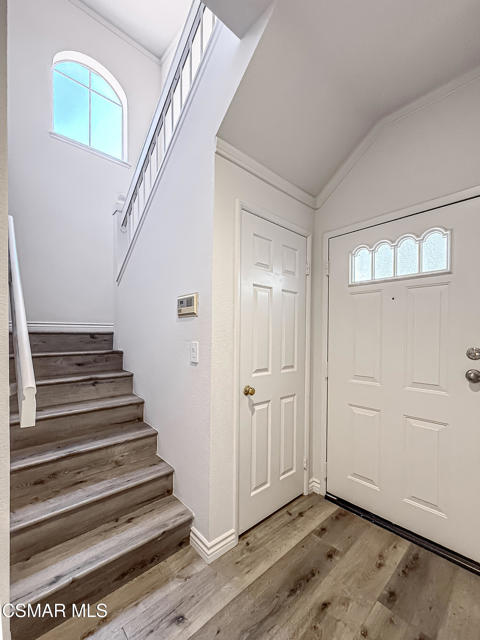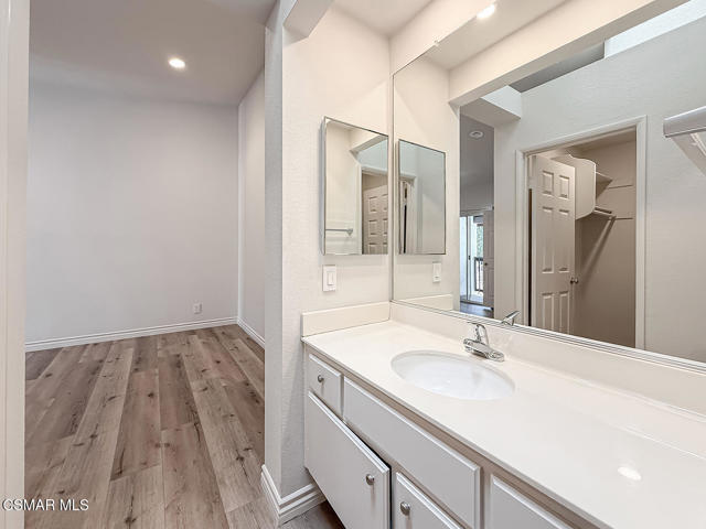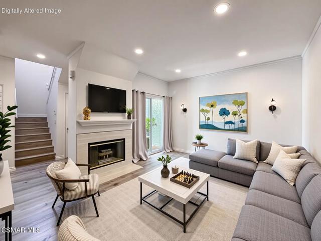 Fantastic Light & Bright Shadow Oaks Townhome with TWO Primary Bedrooms and direct garage access! A charming front patio welcomes you in where you are greeted by HANDSOME upgraded wood-like flooring found THROUGHOUT the home! The spacious Living Room is anchored by a charming gas fireplace and features an abundance of natural light from sliding glass doors which access the front patio. The Dining Room is ready for both formal & informal entertaining alike and flanks the UPGRADED Kitchen which showcases ATTRACTIVE granite countertops, LOTS of upgraded cabinetry, a ROOMY pantry, and DESIGNER appliances. A pair of sliding glass doors opens to the patio to fill the Kitchen with natural light! The staircase + downstairs powder room enjoy a continuation of upgraded wood-like flooring and the upstairs landing provides linen cabinet storage space. Both bedrooms offer TALL VAULTED ceilings, upgraded wood-like flooring, recessed lights, WALK-IN closets, and en-suite bathrooms fitted with built-in vanities and tub-showers. One of the bedrooms highlights sliding glass doors to a private balcony! The garage is accessed via the brick-surfaced outdoor patio and has TONS of built-in storage cabinetry and hosts the unit's Laundry area. At this tranquil community, you have access to a glimmering community POOL & SPA, access to AWARD-winning schools, and FANTASTIC local hiking & biking trails! CONVENTIONAL FINANCING AVAILABLE!