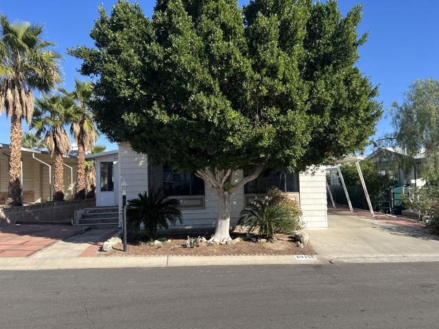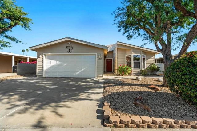 Welcome to this well maintained 3-bedroom, 2-bath manufactured home with an epoxy coated 2-car garage in the guard-gated 55+ community of Palm Desert Greens Country Club. You own the land and golf is included in the low HOA--an exceptional value in the desert.This Cavco-built double-wide home (2004) features vaulted ceilings, an open and airy floor plan, tile flooring throughout the main living areas, and stunning mountain views. The spacious kitchen offe...